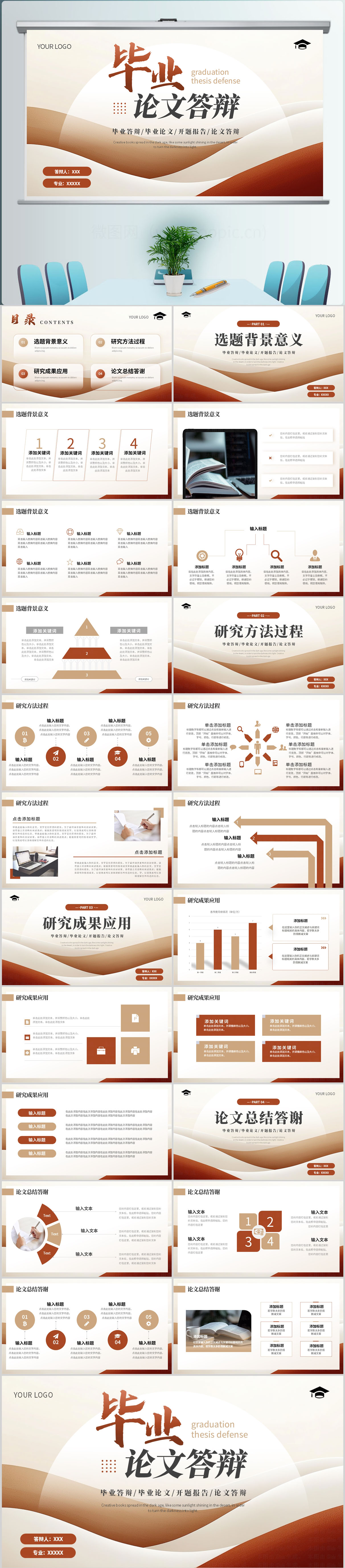 棕色咖色简约毕业论文答辩ppt模板设计
