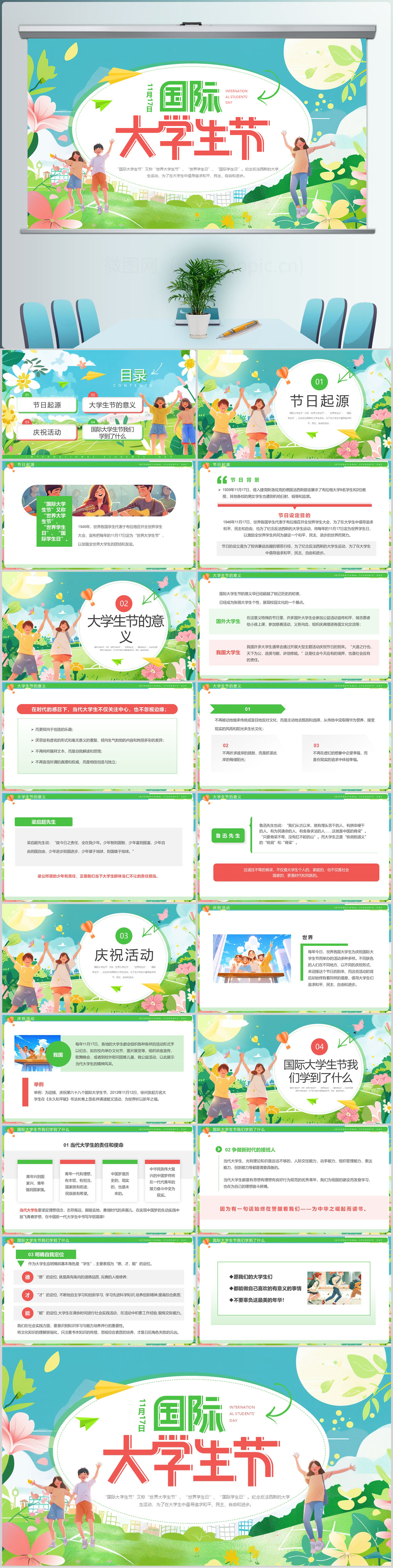 国际大学生节介绍PPT模板设计