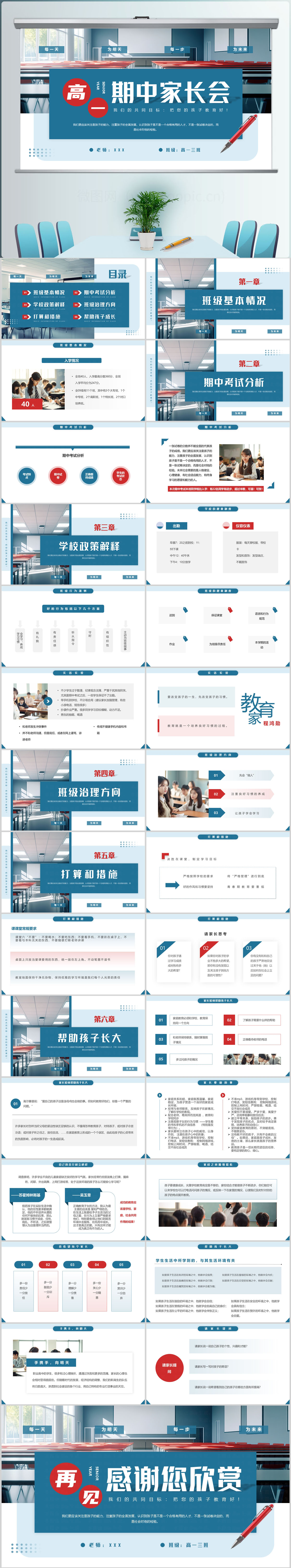 简约风高一期中家长会PPT模板设计