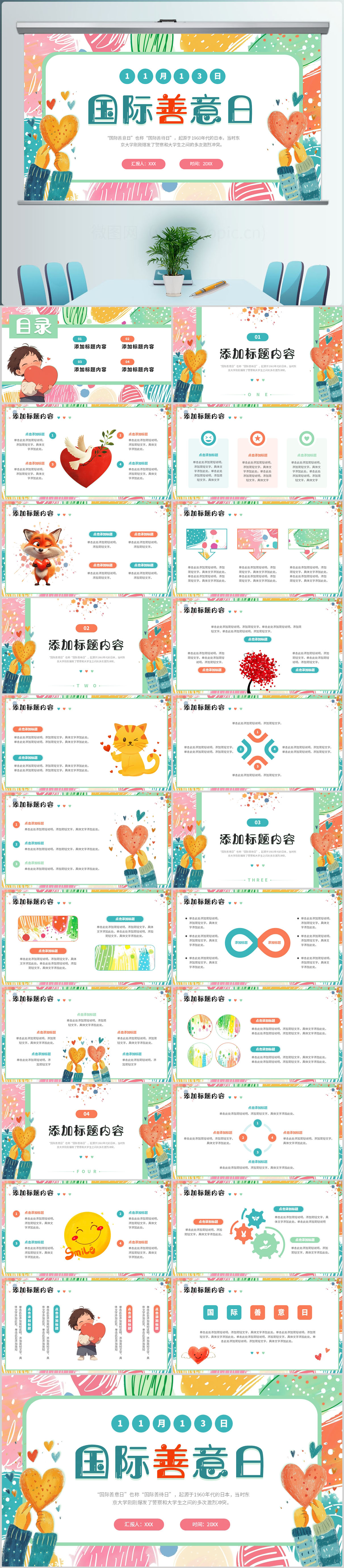 小清新国际善意日PPT通用模板设计