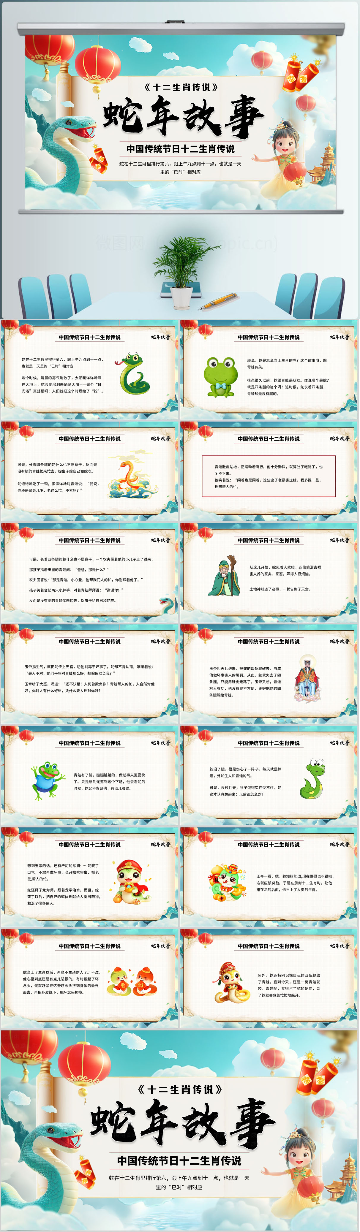 中国传统节日十二生肖传说介绍PPT模板设计