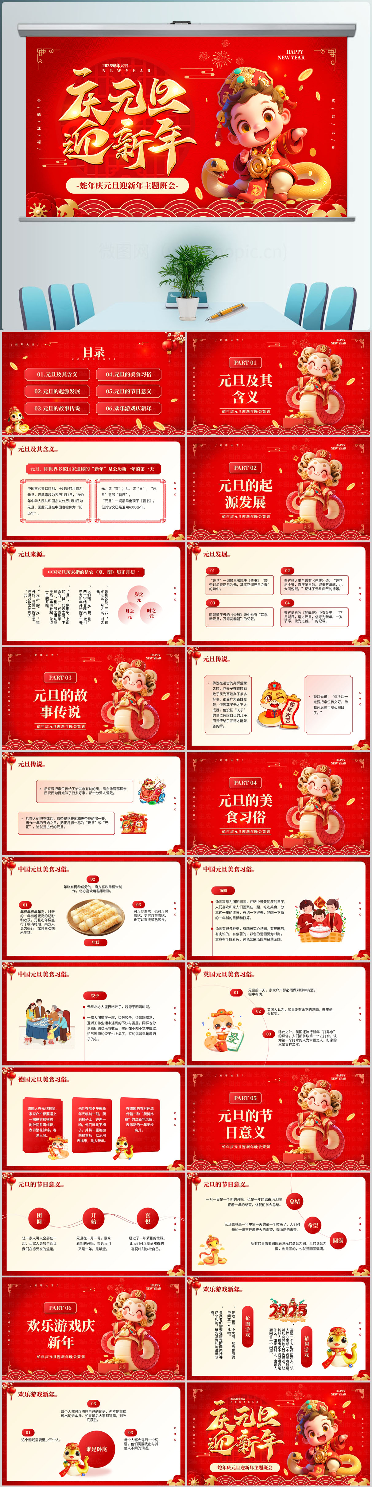 红色中国风蛇年企业年会小游戏PPT模板设计