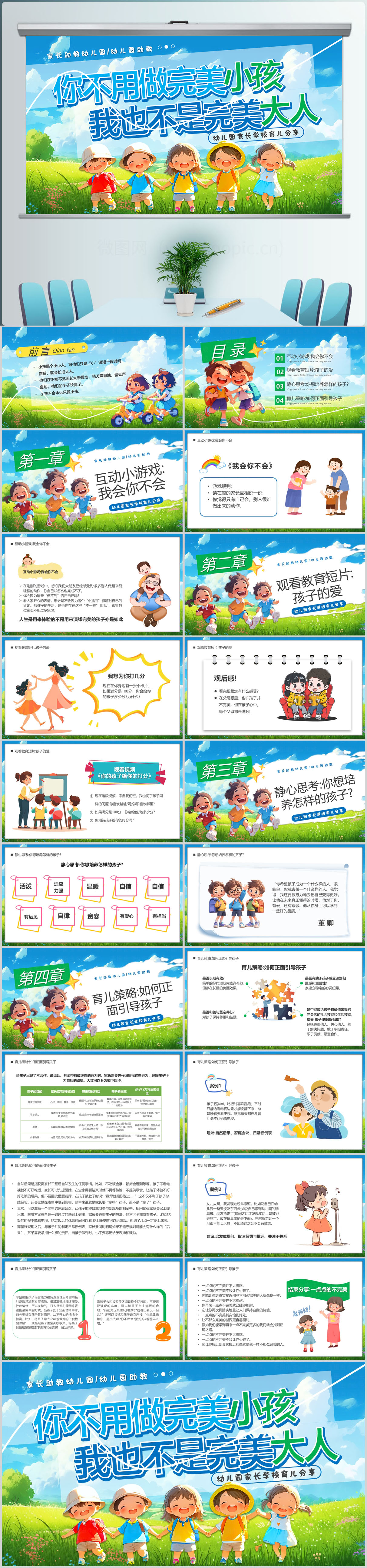 卡通风学校育儿经验分享PPT模板