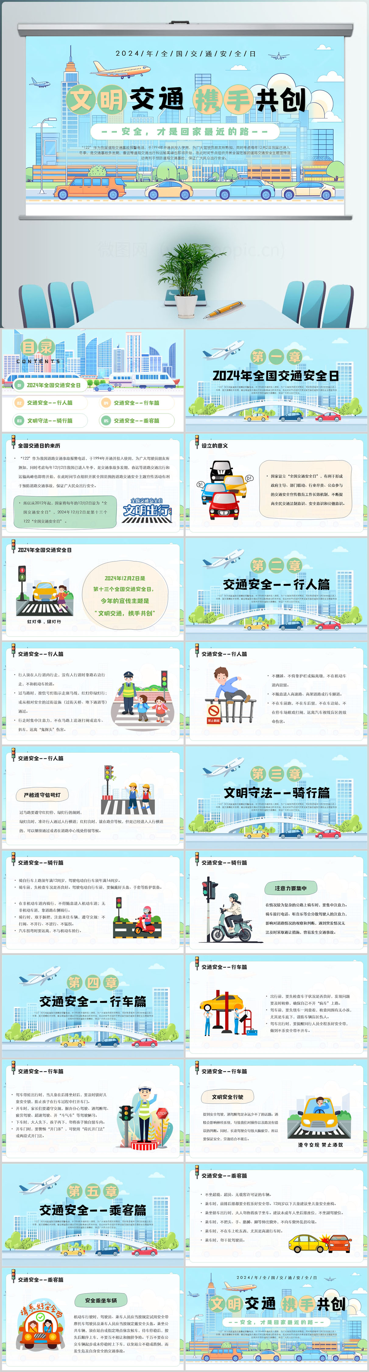 卡通幼儿园全国交通安全日宣传课件ppt模版设计