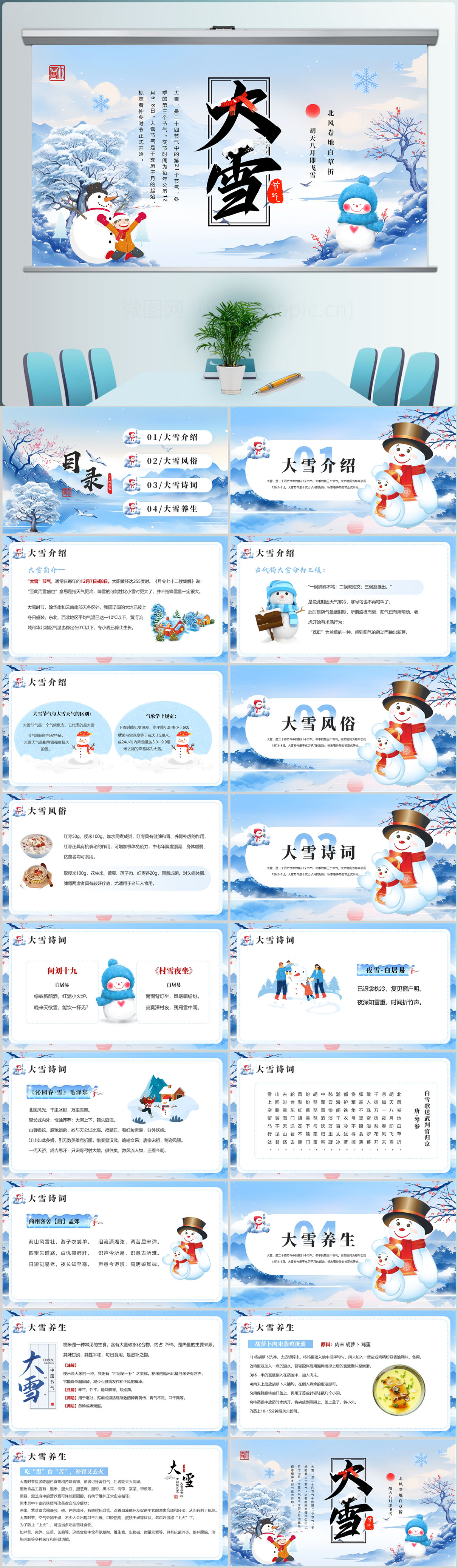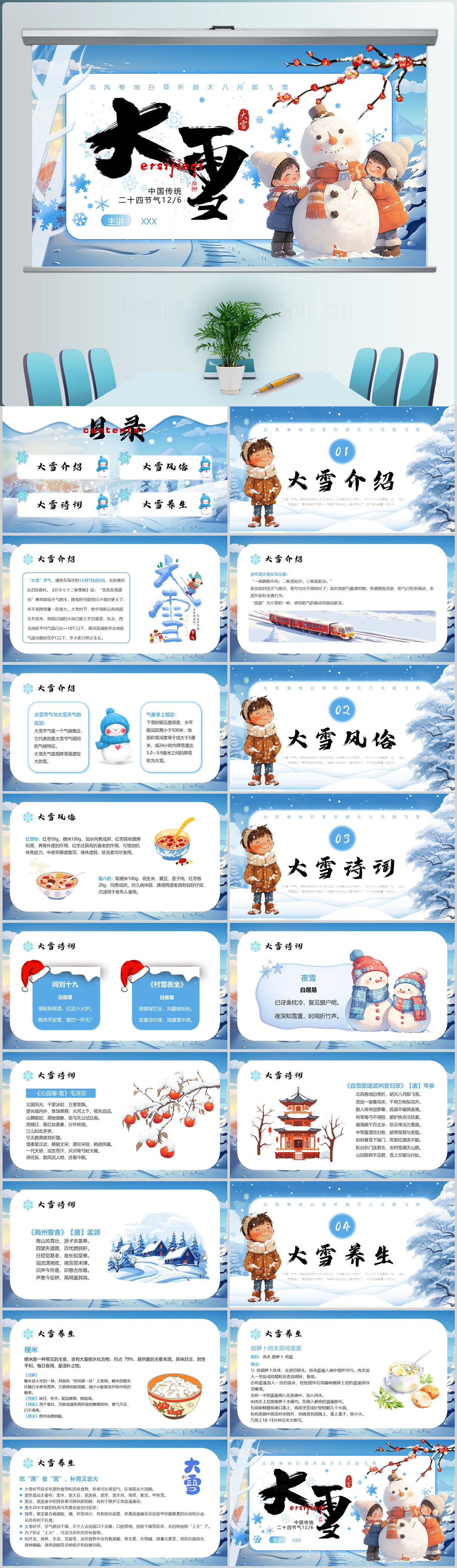 二十四节气之大雪节气文化习俗课件PPT模版设计