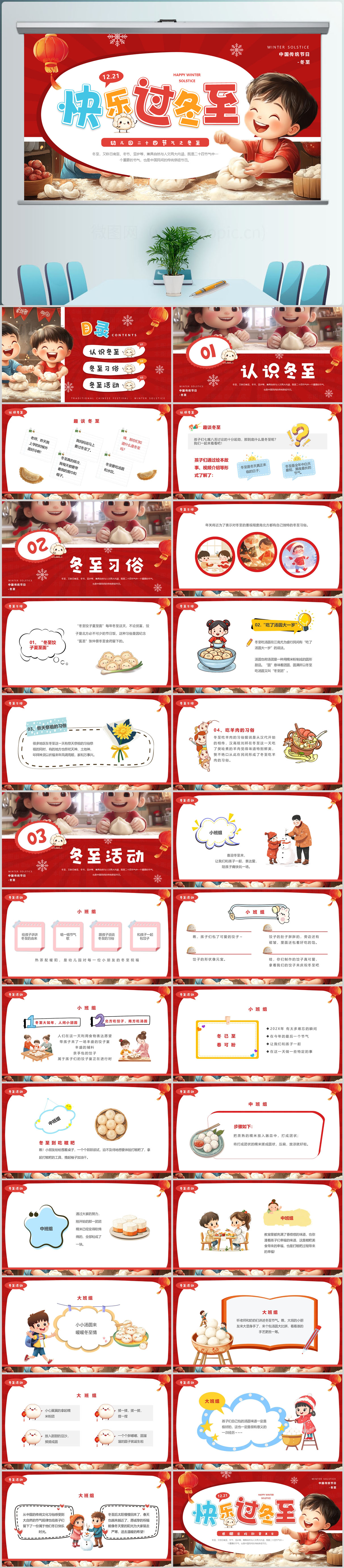 卡通二十四节气之冬至介绍PPT模版设计