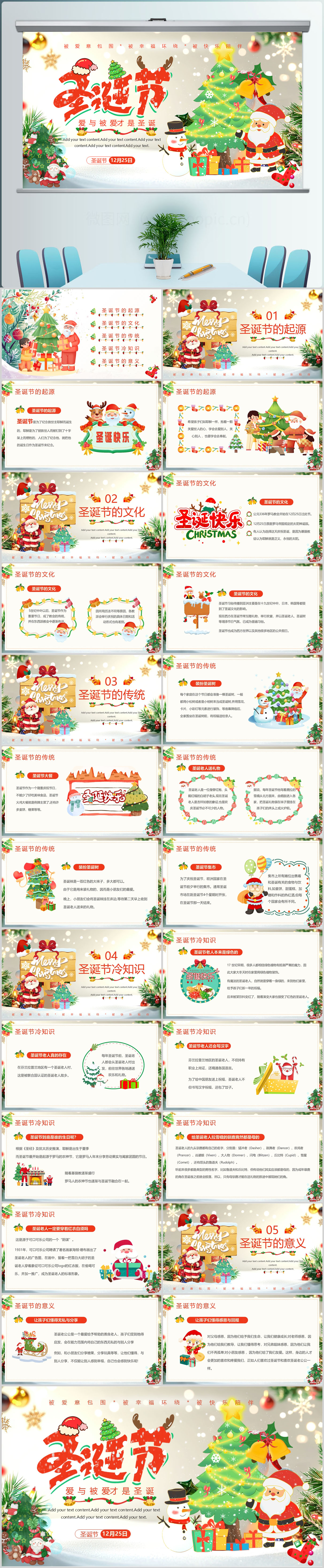 圣诞节快乐圣诞节由来圣诞节活动PPT模板设计