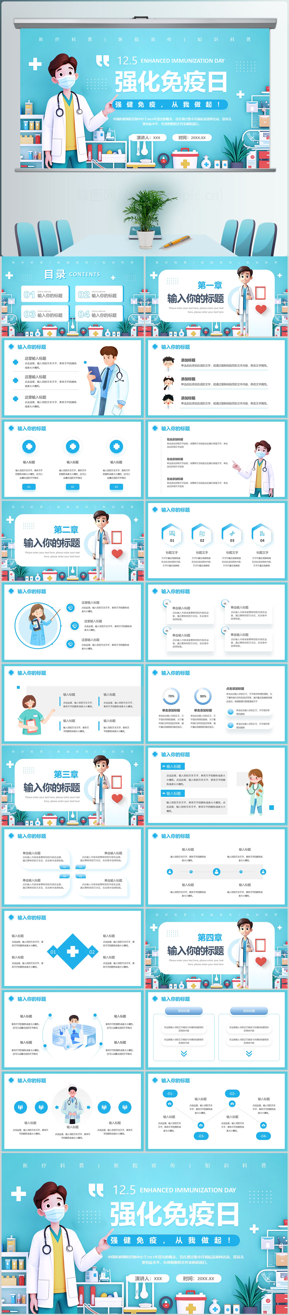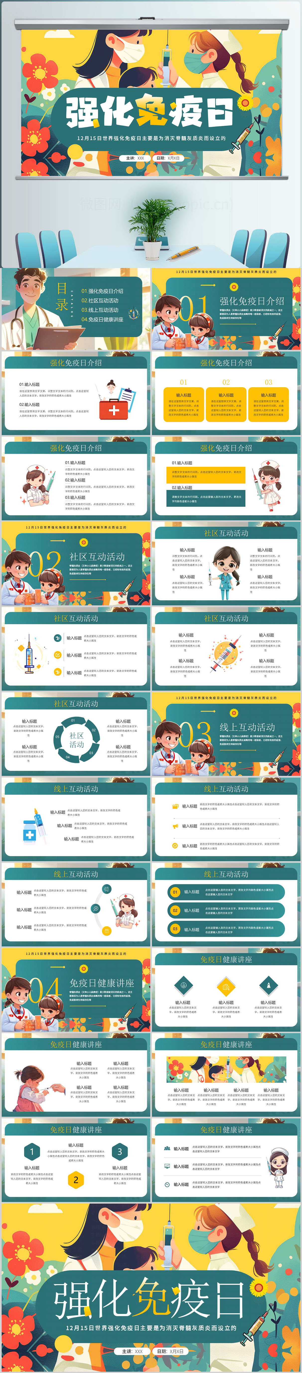 卡通风强化免疫日宣传PPT模板设计