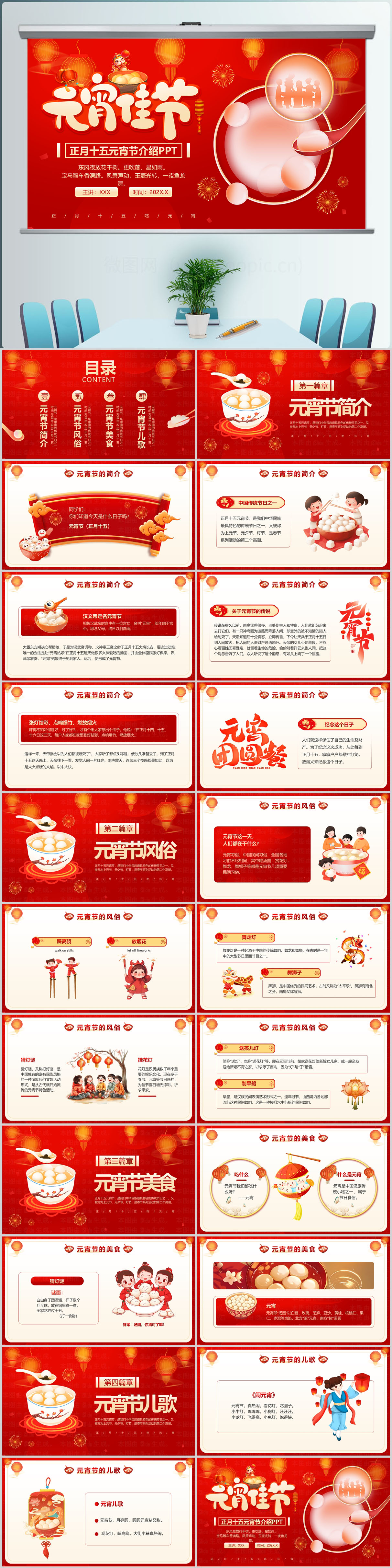 红色喜庆风正月十五元宵节介绍PPT模板设计