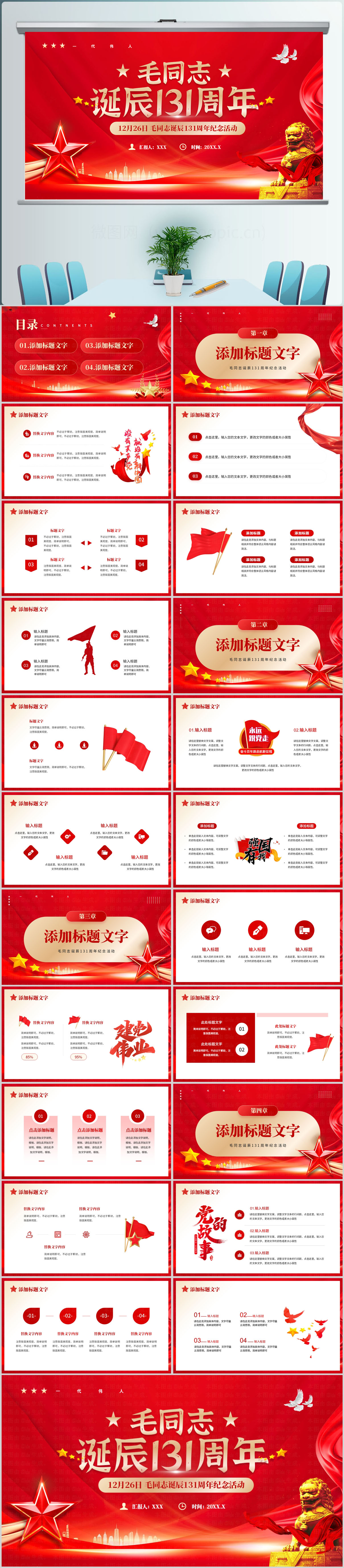红色大气12月26日毛同志诞辰131周年纪念活动 ppt模板