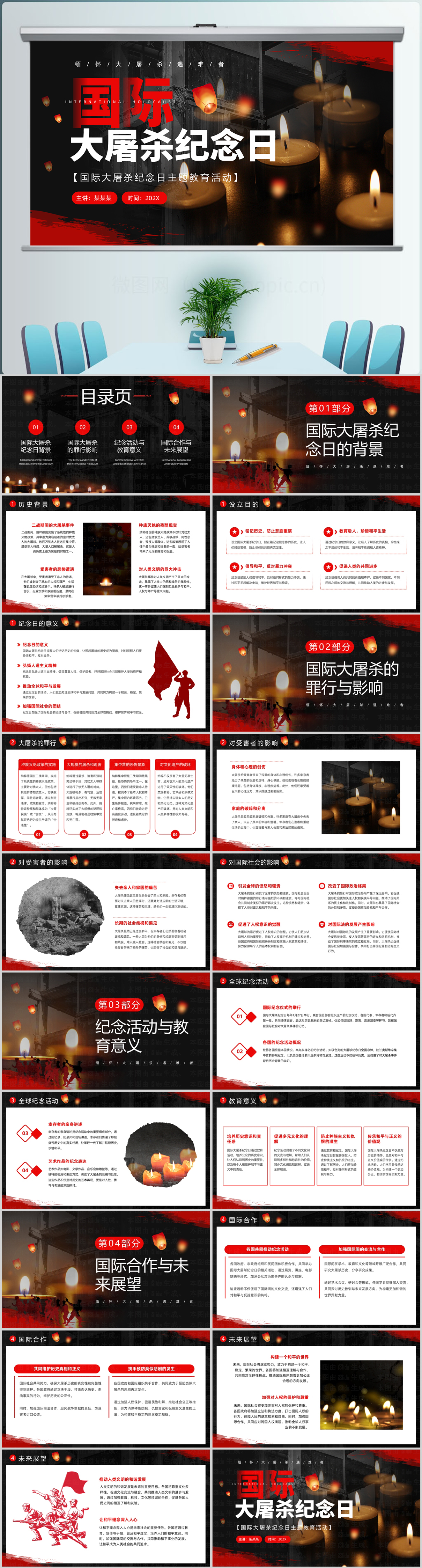 黑色简约风国际大屠杀纪念日公祭日介绍PPT模板