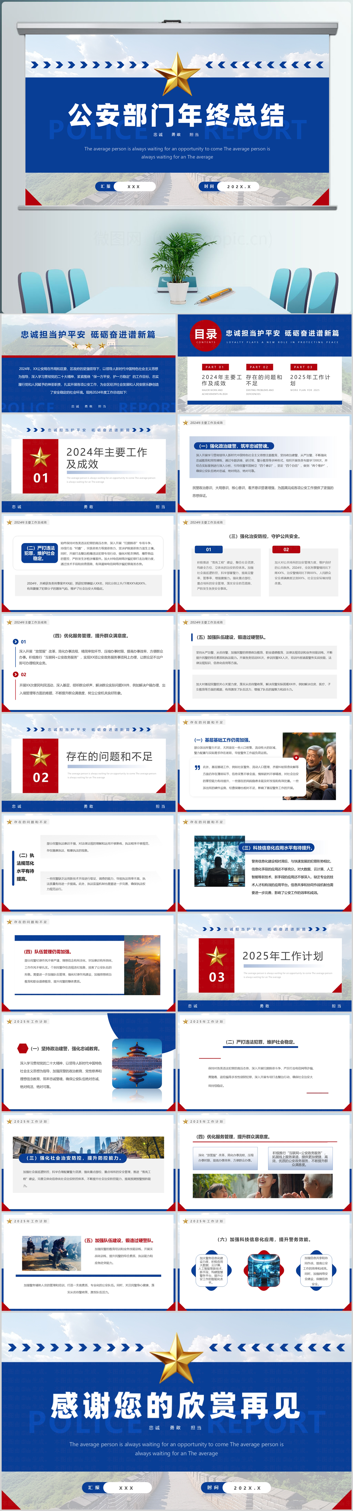 蓝色公安部门警察派出所年终总结汇报ppt模板