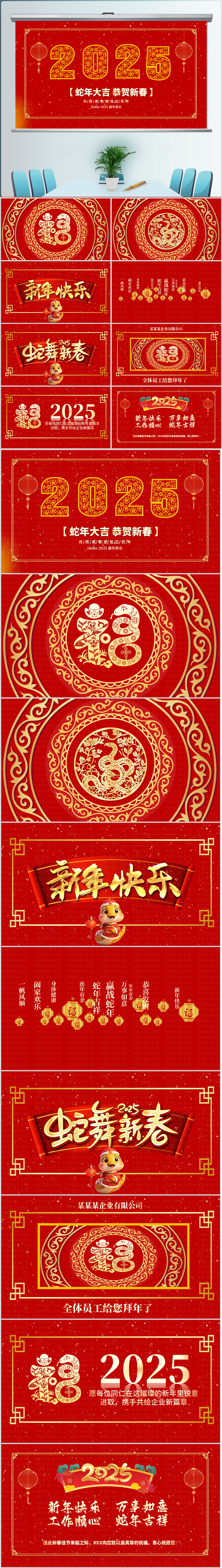 2025红色剪纸风春节拜年祝福电子贺卡视频ppt模板