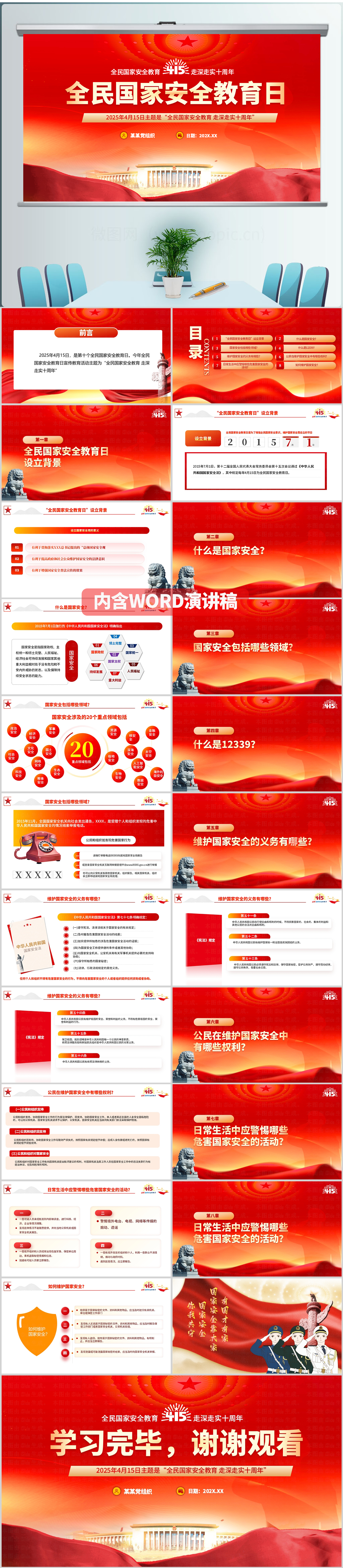 2025年全民国家安全教育日主题介绍ppt模板(内含WORD演讲稿)