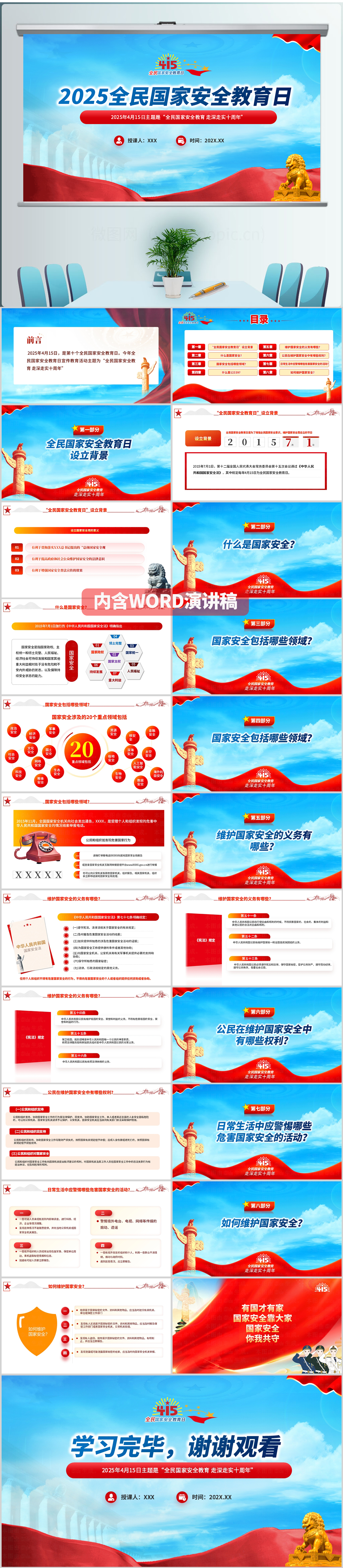 2025全民国家安全教育日介绍ppt模板(内含WORD演讲稿)