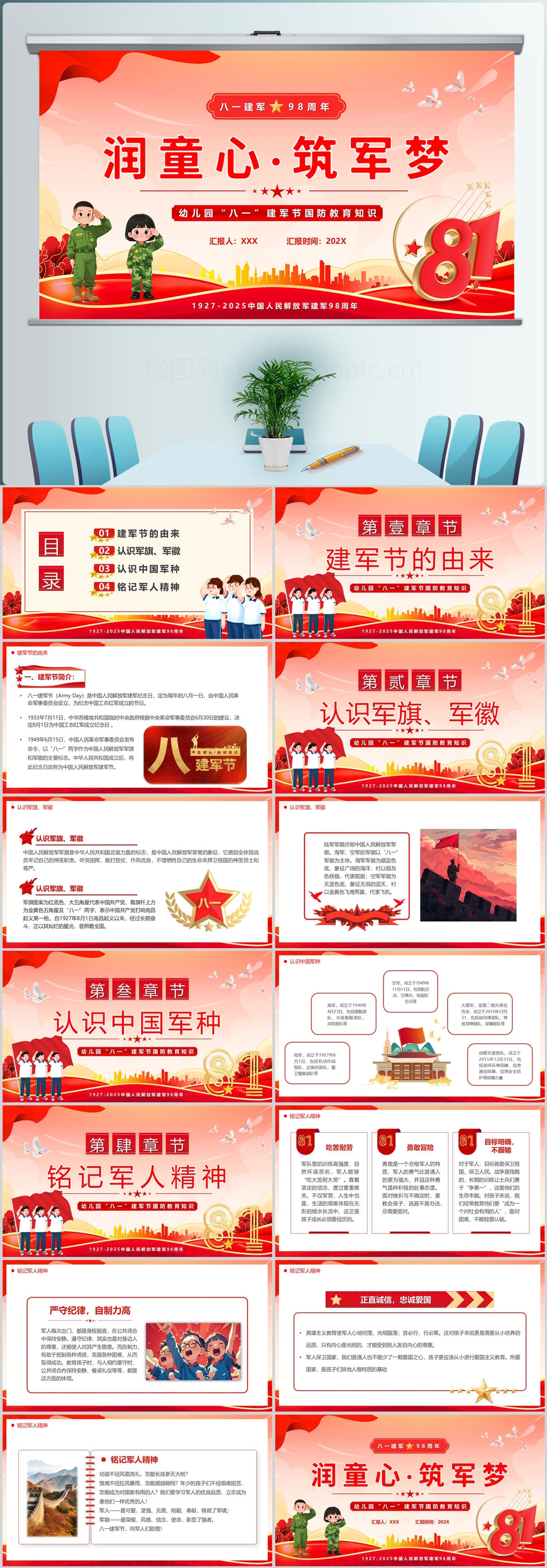 筑军梦“八一”建军节98周年国防教育知识学习ppt模板