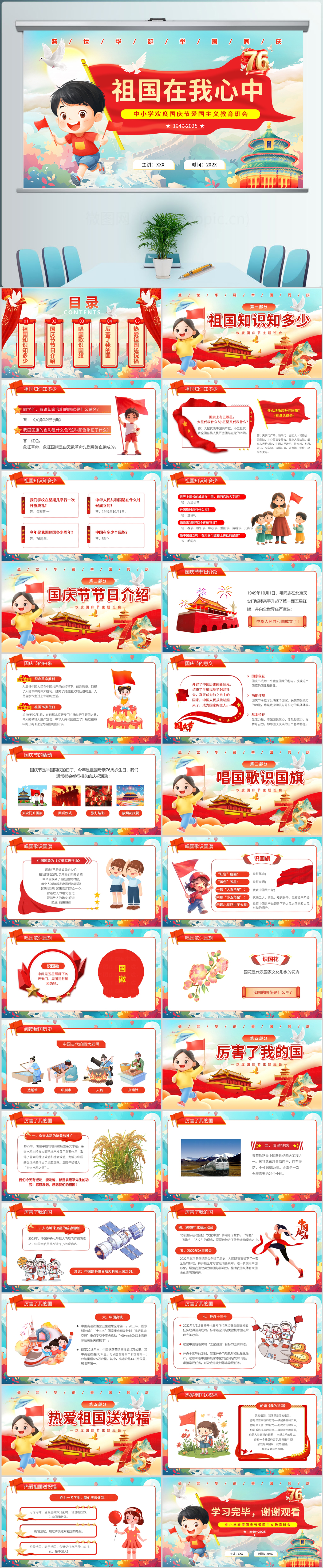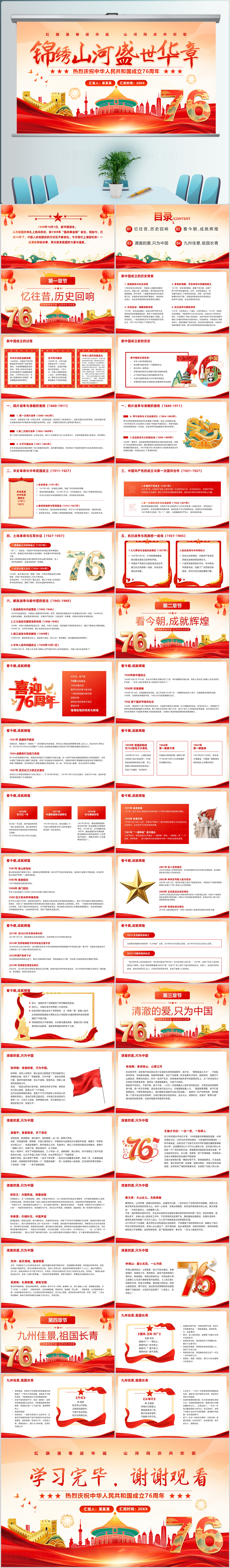 红色国潮风国庆节新中国成立75周年十一PPT模板