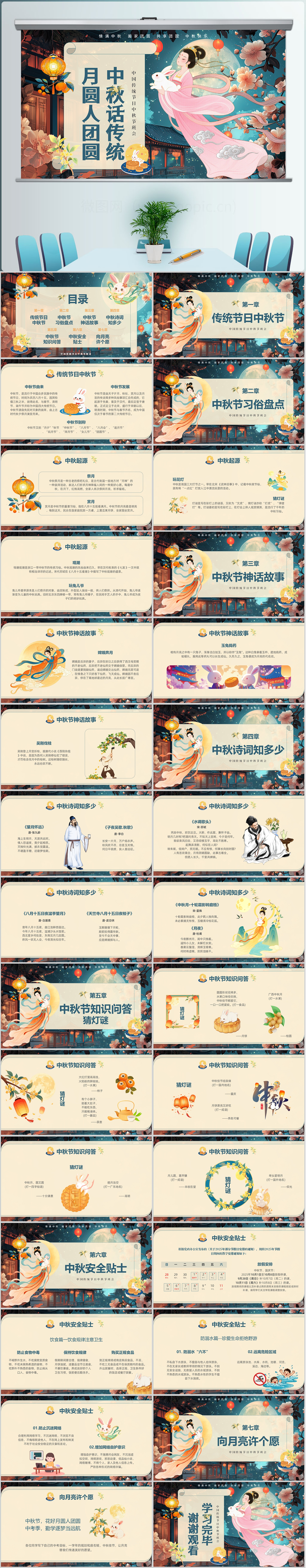 2025中国风中国传统节日中秋节习俗班会ppt模板