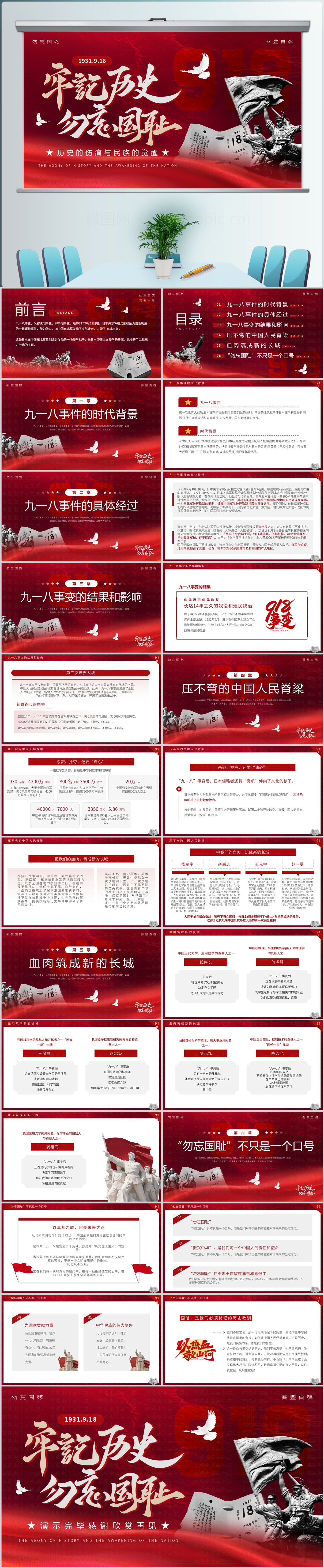 简约风牢记历史勿忘国耻九一八事变课件ppt模板