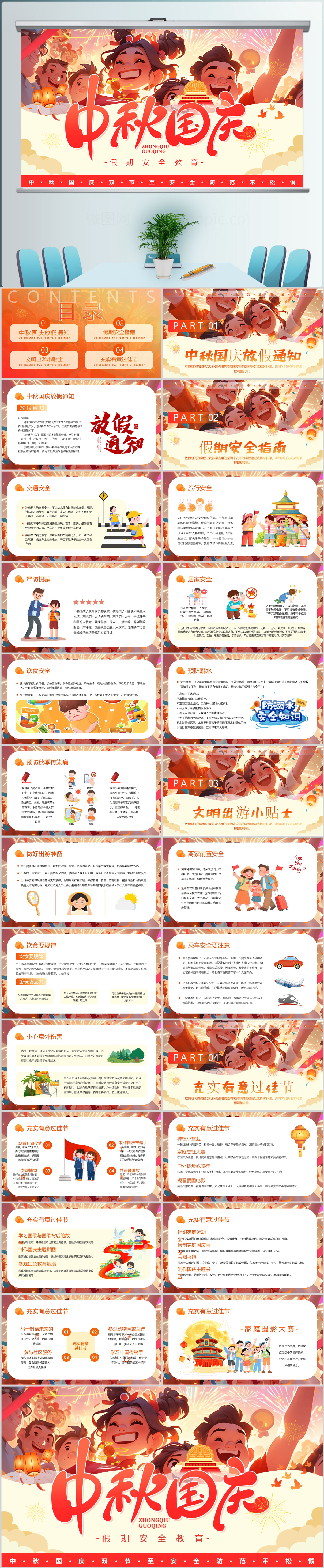 2025中秋国庆节放假通知假期安全教育培训课件ppt模板