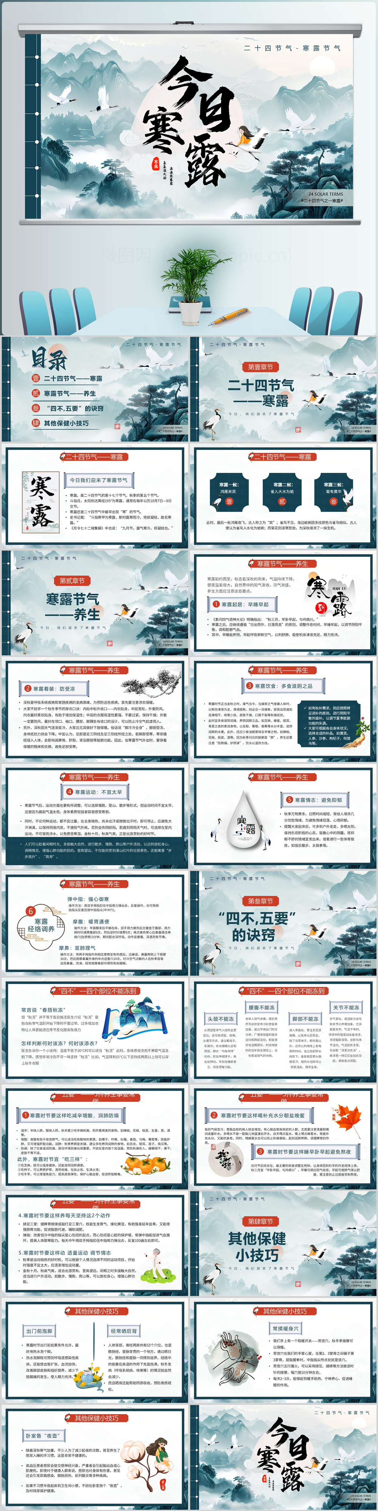 中国风水墨二十四节气今日寒露介绍PPT模板