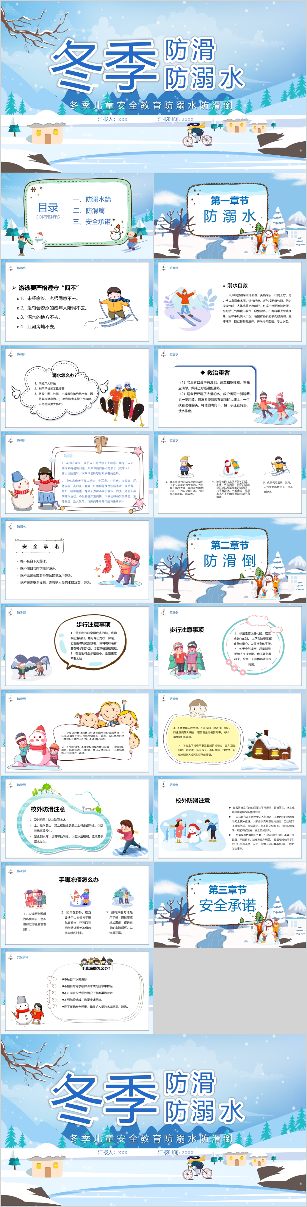 儿童防溺水防滑倒安全教育课件动态PPT模板