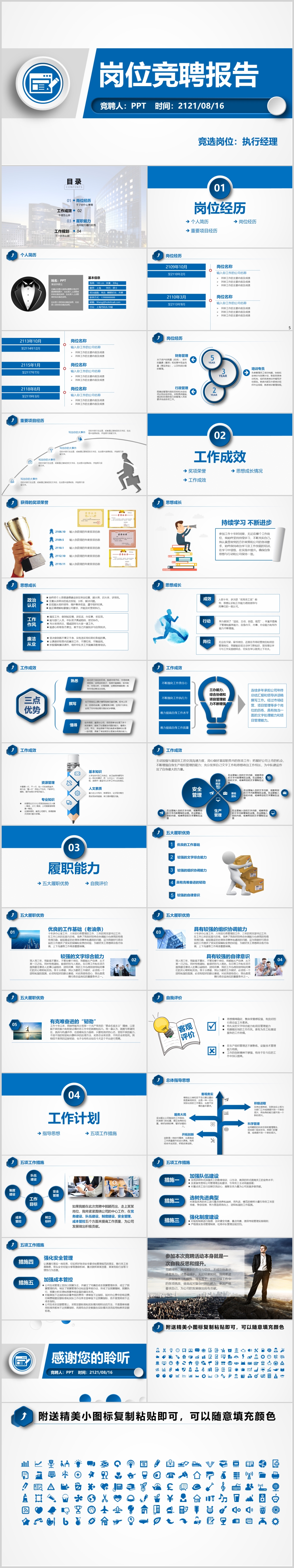 2021蓝色大气述职求职个人简历岗位竞聘PPT模板