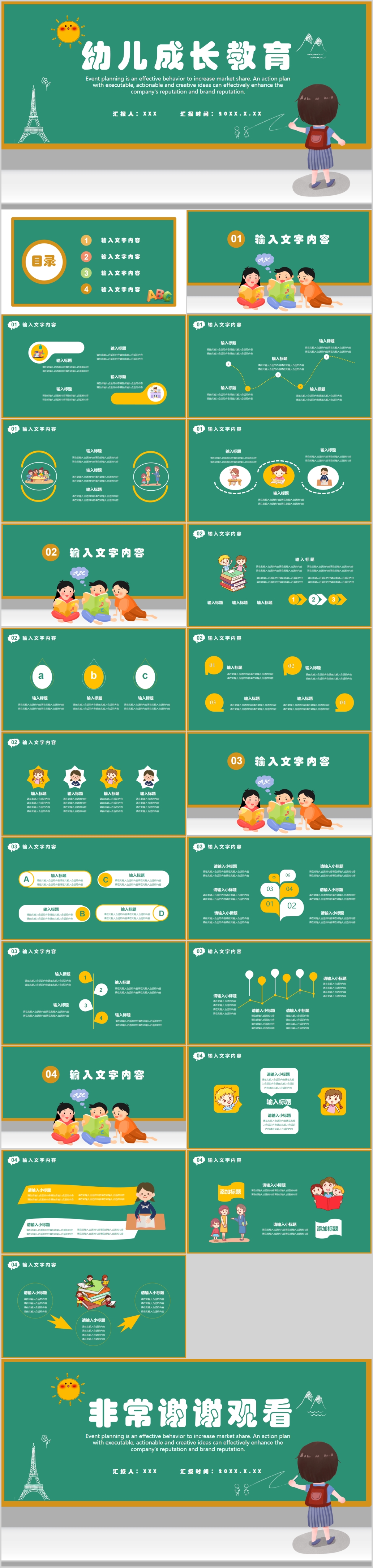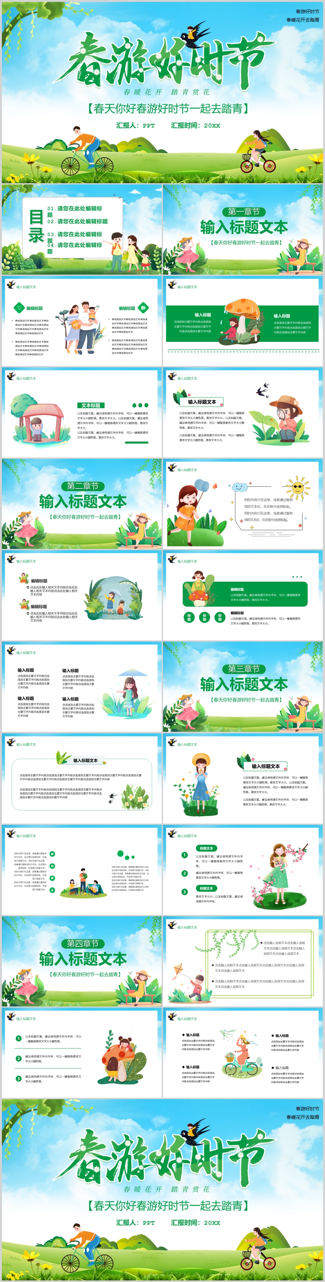 绿色小清新遇见春天春季春暖花开春游踏青PPT模板