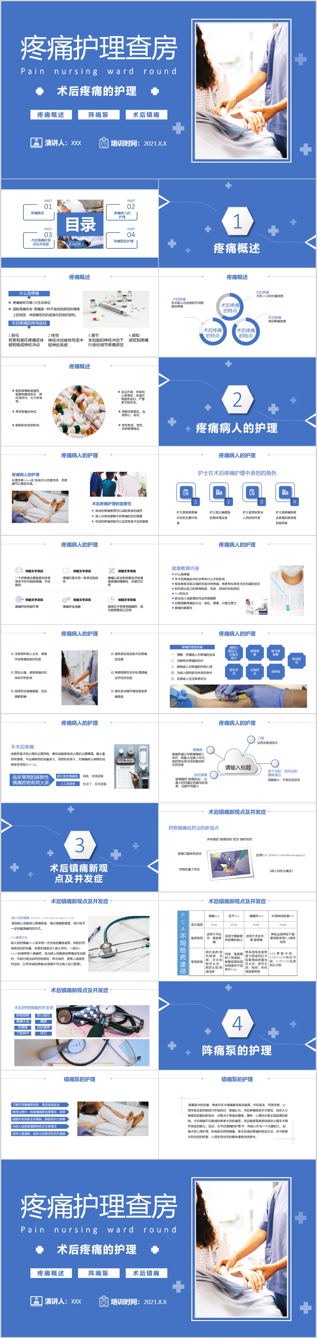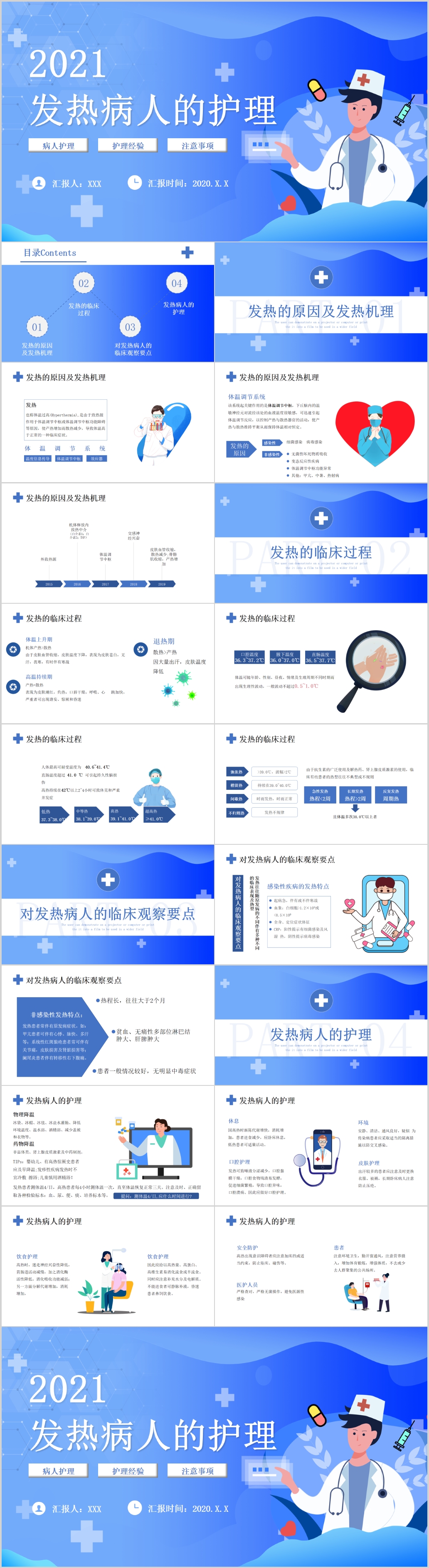 蓝色卡通风发热病人的护理培训教育PPT模板