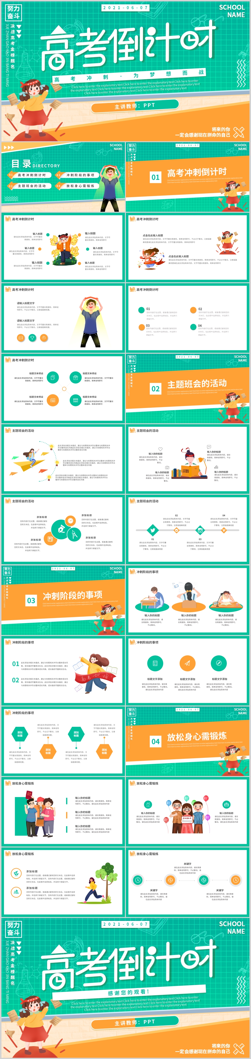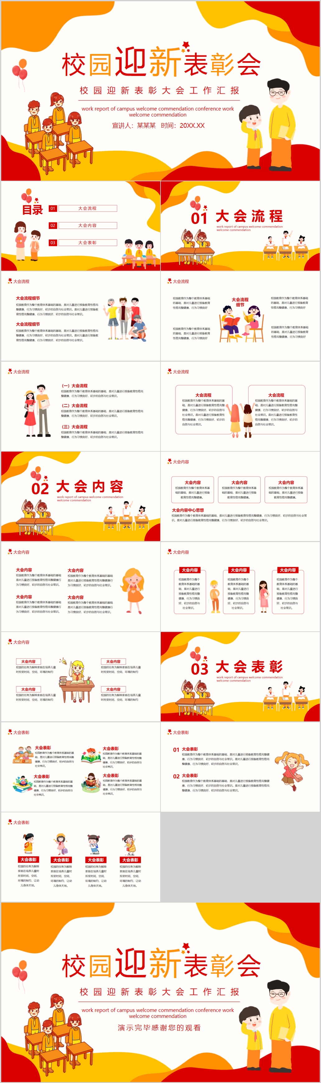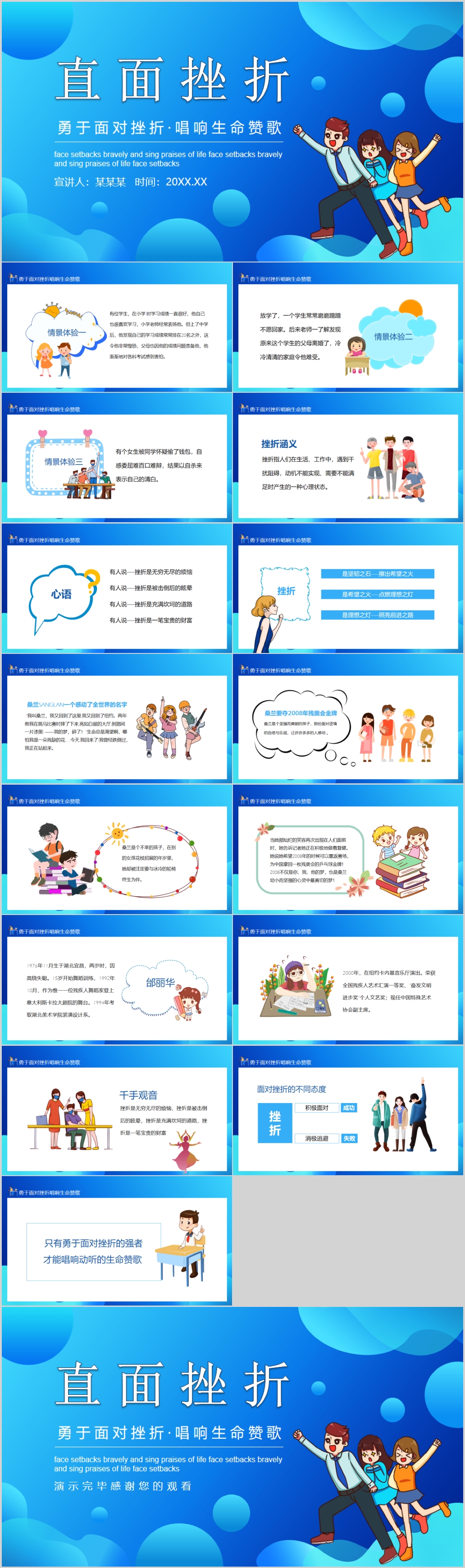 卡通校园中小学生如何正确直面挫折知识介绍PPT模板