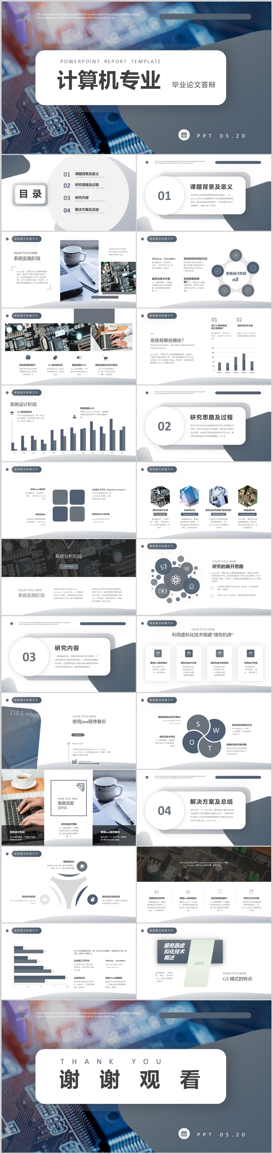 简约大气灰色IT计算机专业毕业论文答辩ppt模板