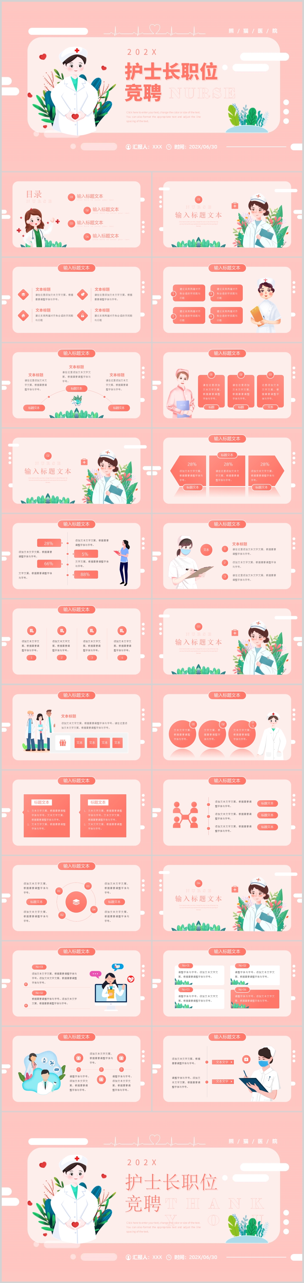 唯美粉色医疗护士节护理医药医院护士简历PPT模板