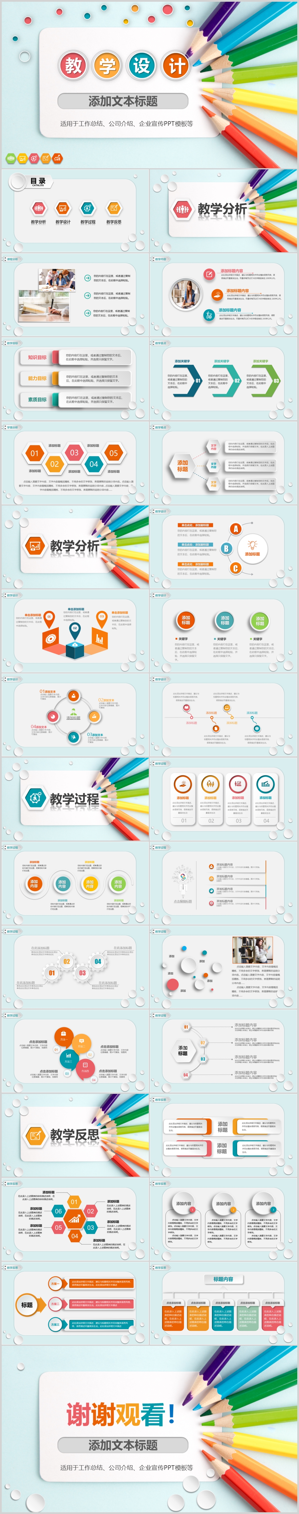 铅笔书签教育教学课程设计教师说课教学设计PPT模板