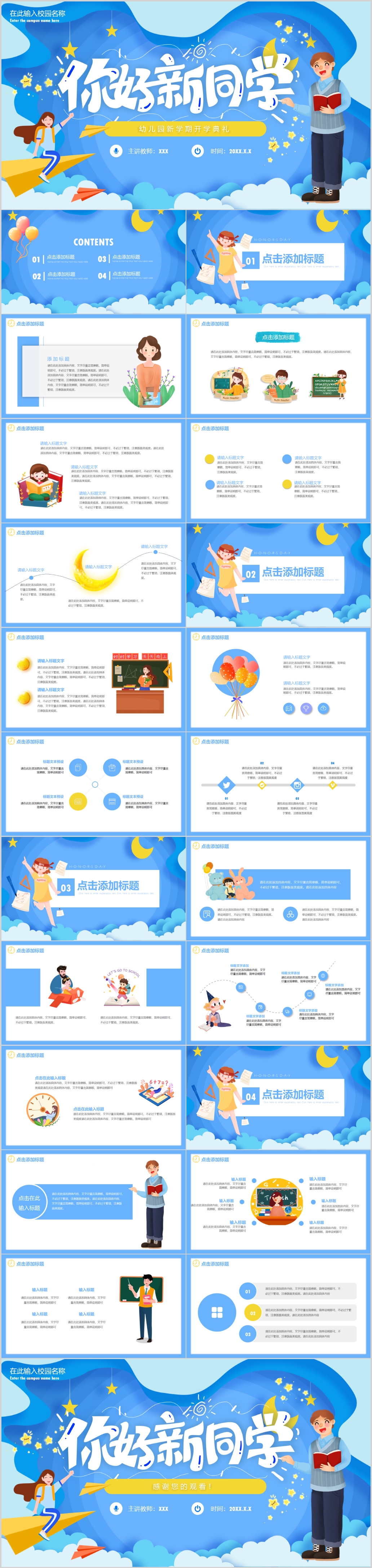卡通儿童你好新同学幼儿园开学典礼动态PPT模板