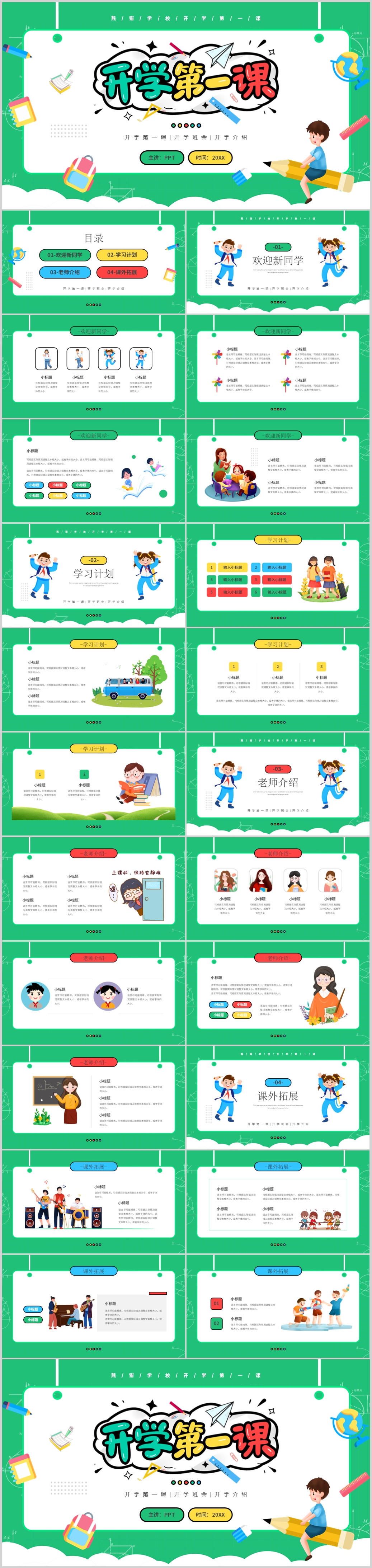 幼儿园新学期新面貌儿童教育开学啦开学第一课PPT模板