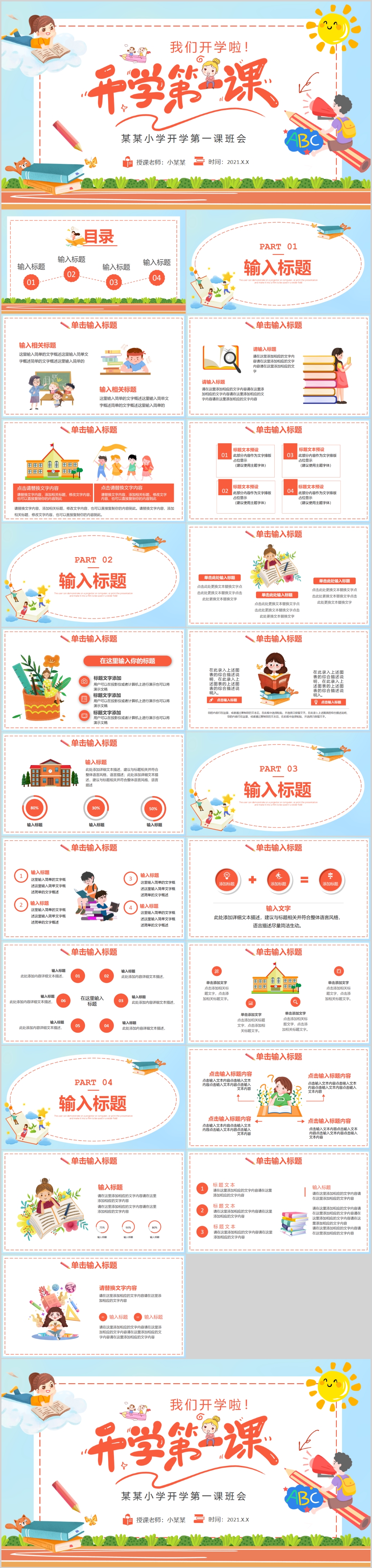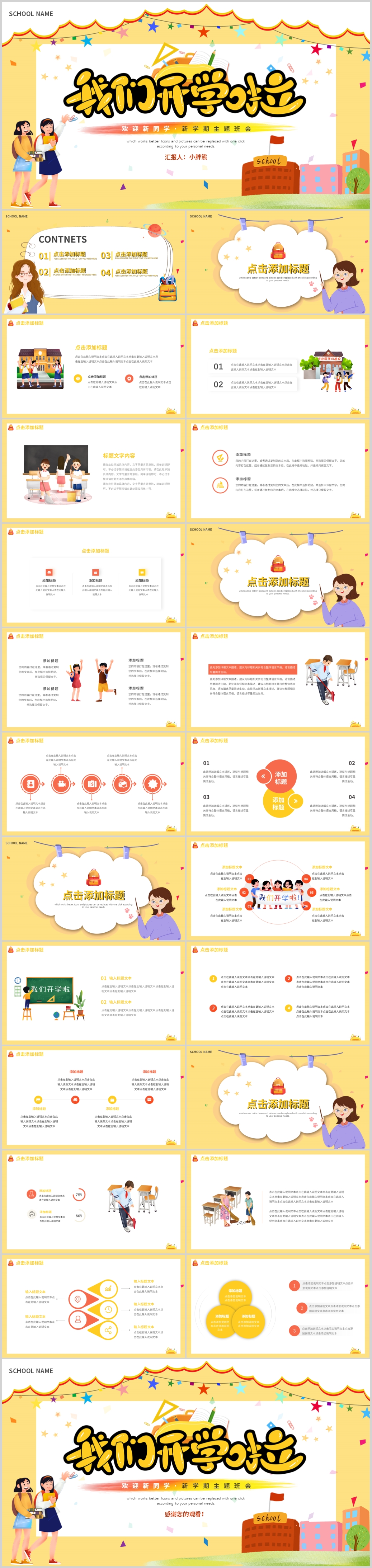卡通我们开学啦新学期班会小学幼儿园家长会PPT模板