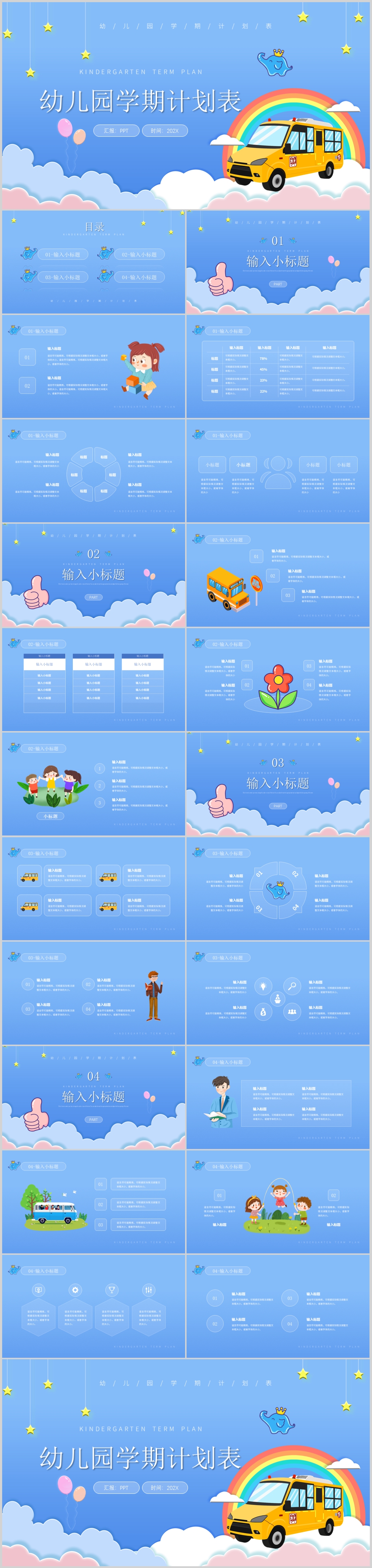 可爱卡通幼儿园开学季新学期班级计划表PPT模板
