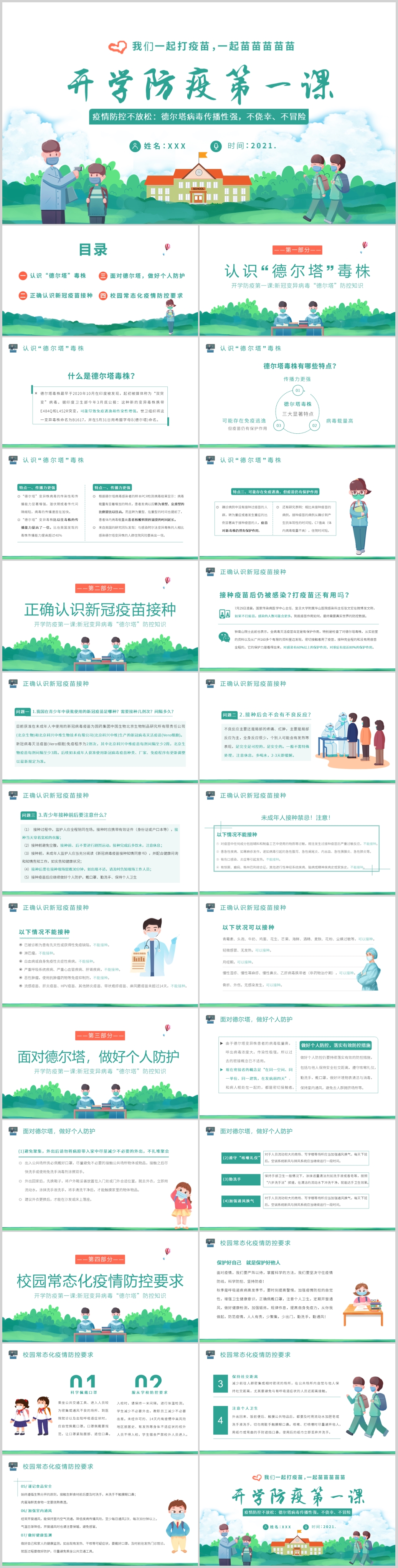 2021预防德尔塔秋季开学防疫第一课班会主题课件PPT模板