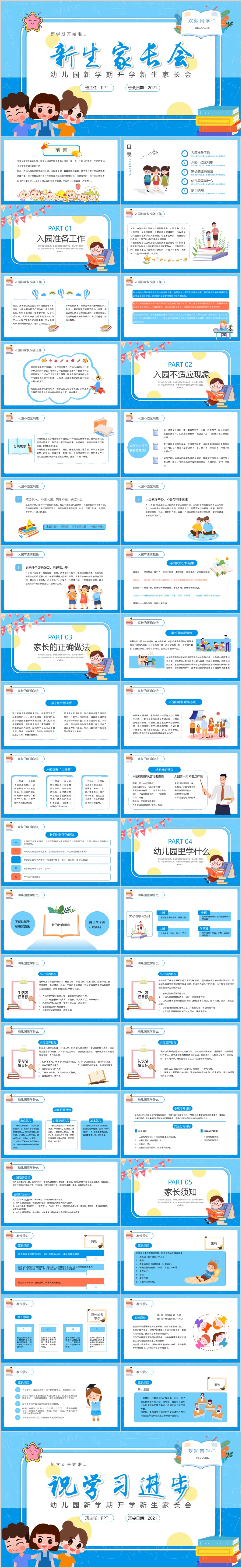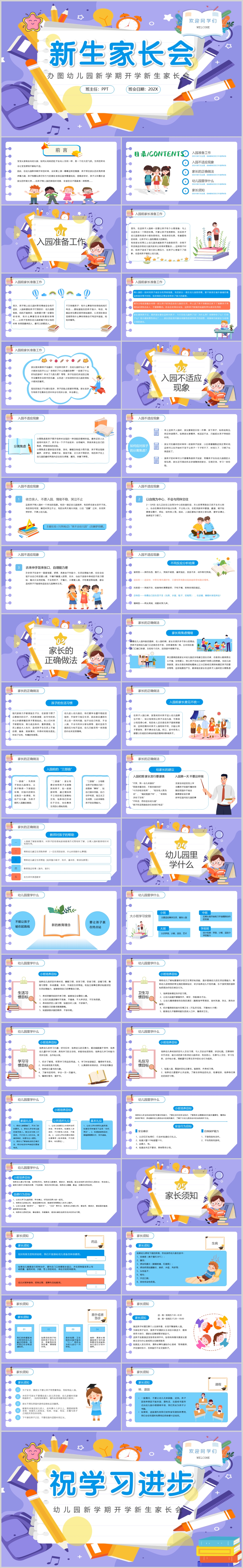 可爱卡通幼儿园中小学生新学期家长会ppt模板