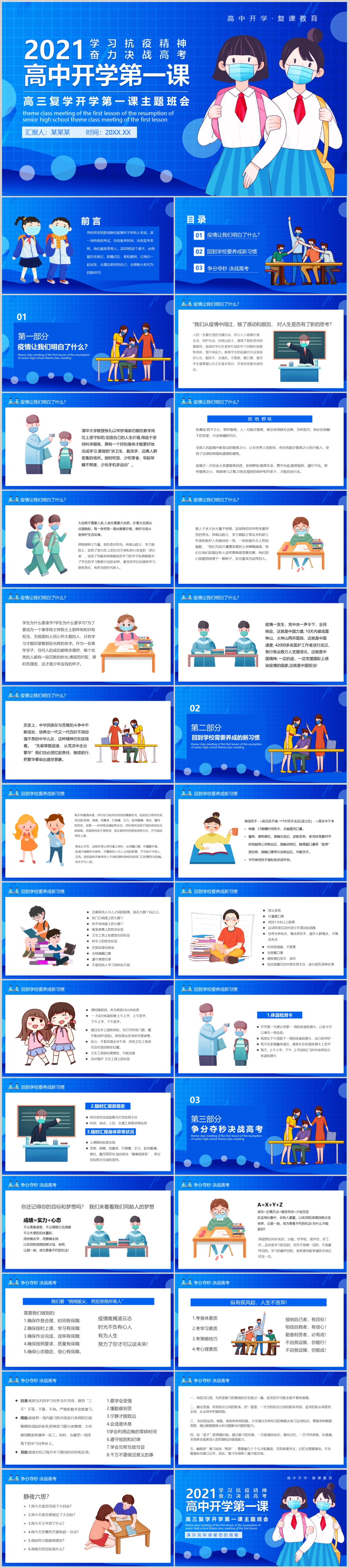 高三开学预防新冠疫情争分夺秒决战高考主题v班会课件PPT模板