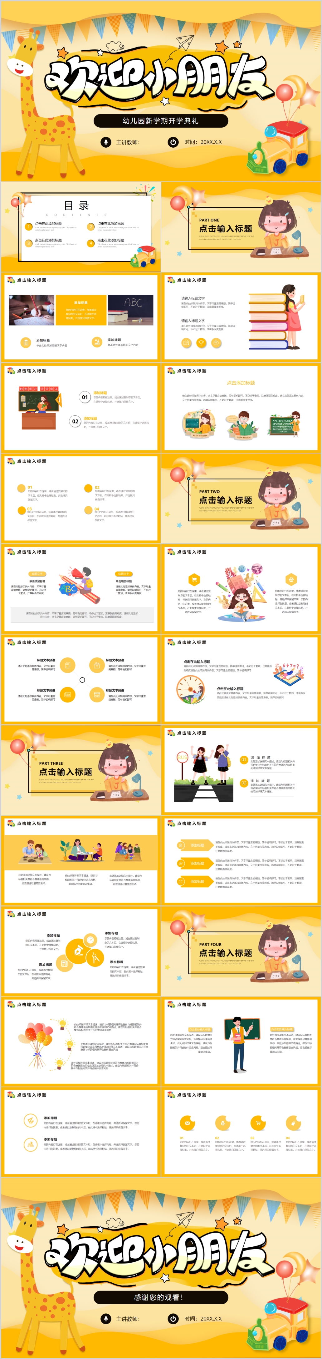卡通可爱儿童开学典礼幼儿园ppt模板