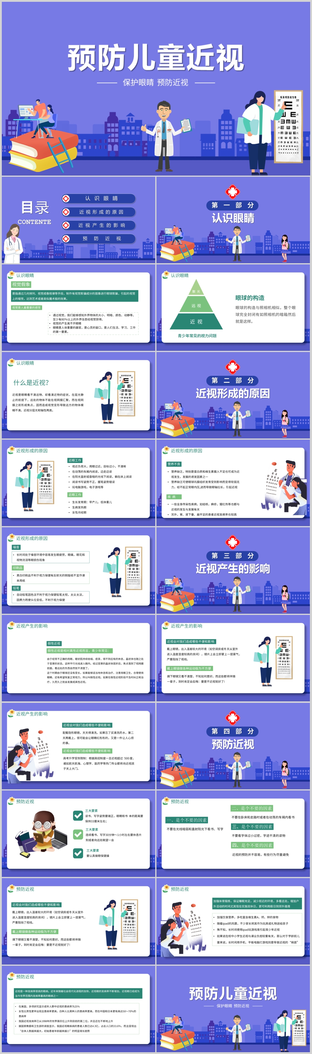 蓝色卡通儿童预防眼睛近视保护视力主题班会ppt模板