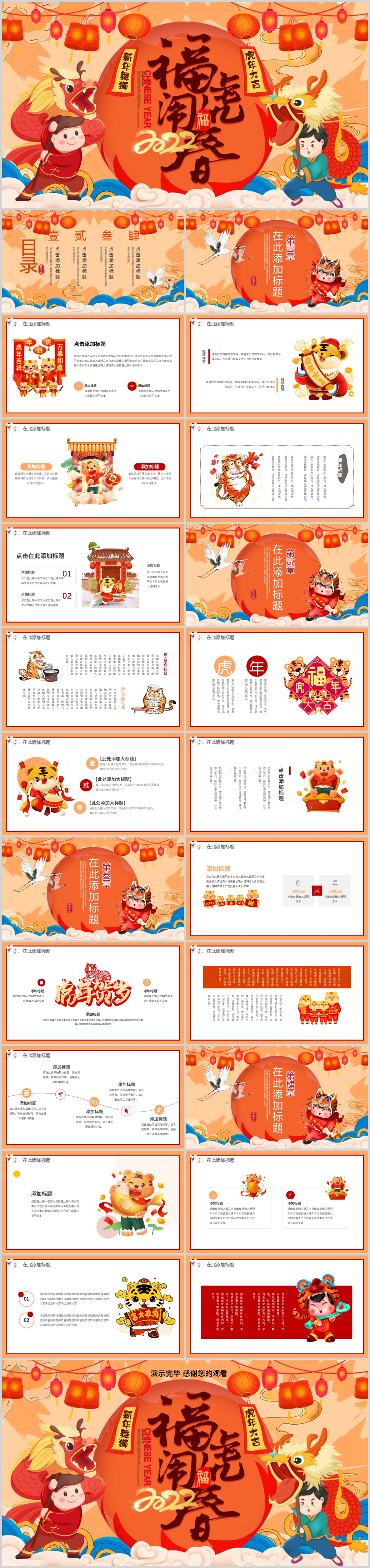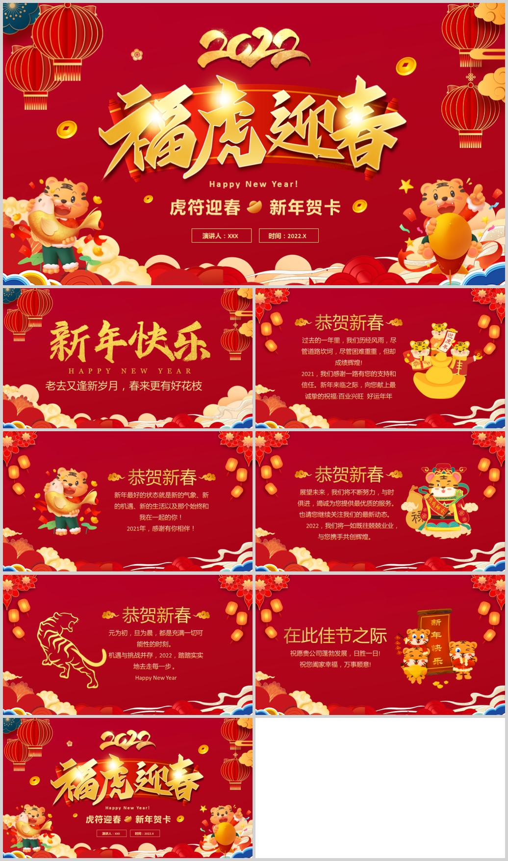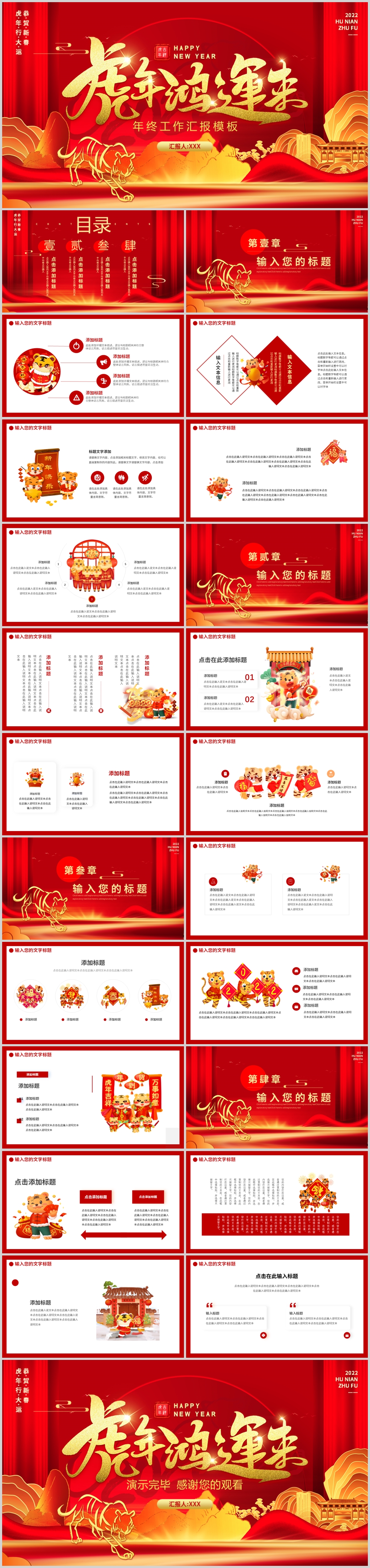 红色大气喜庆中国风虎年鸿运来动态PPT模板