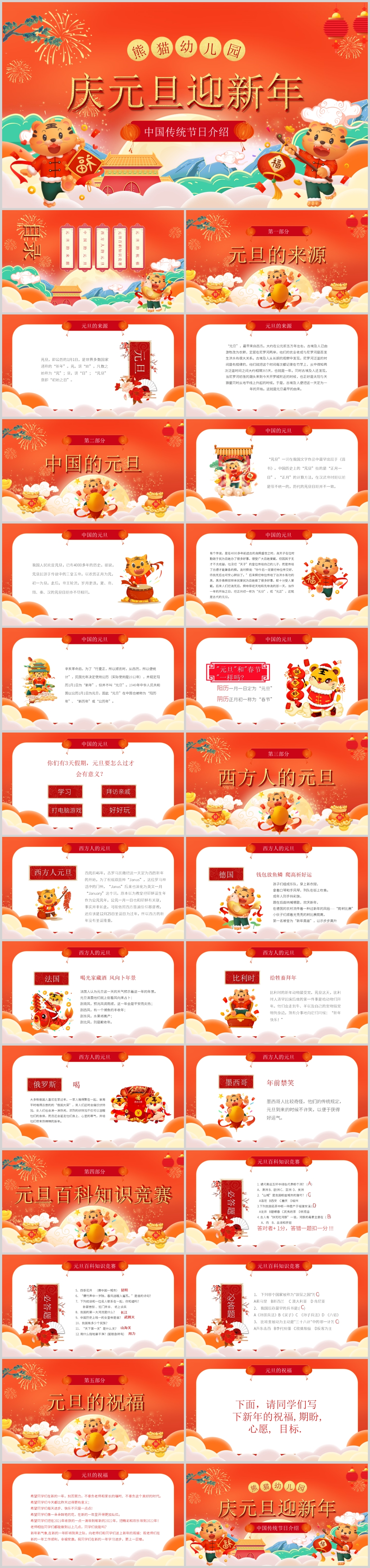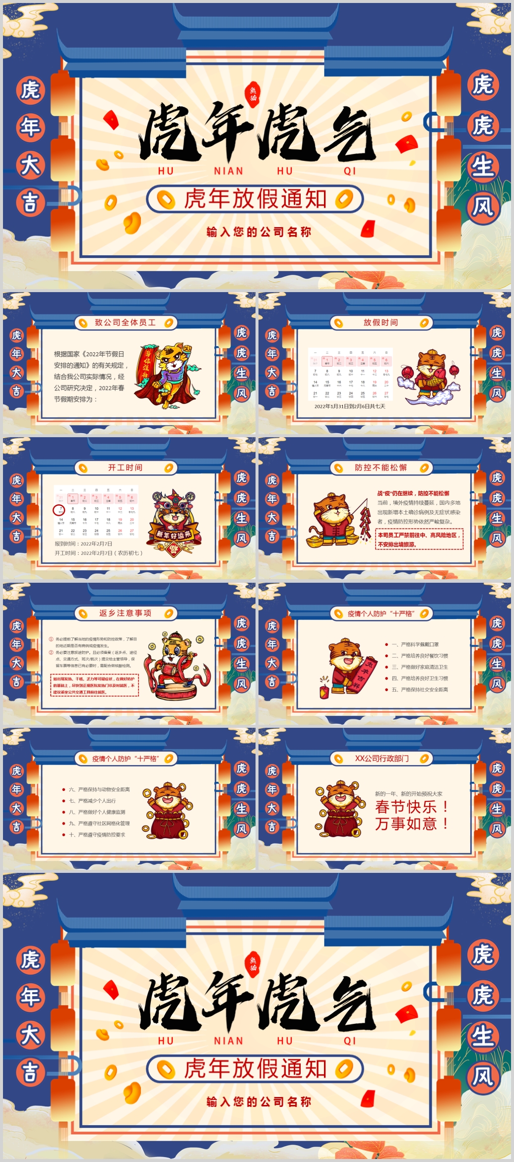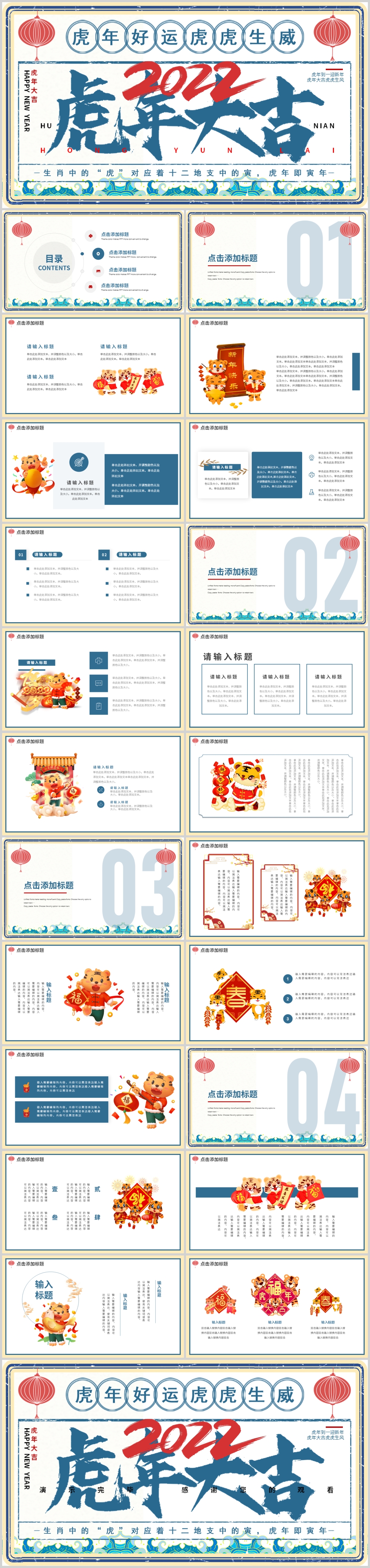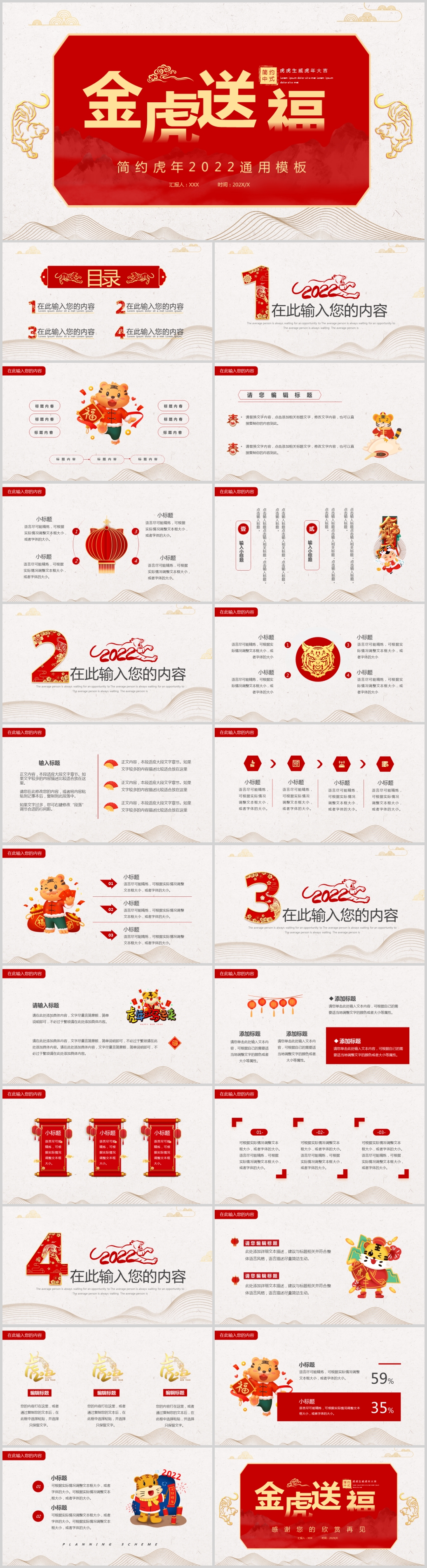 红色大气喜庆中国风虎年鸿运来动态PPT模板