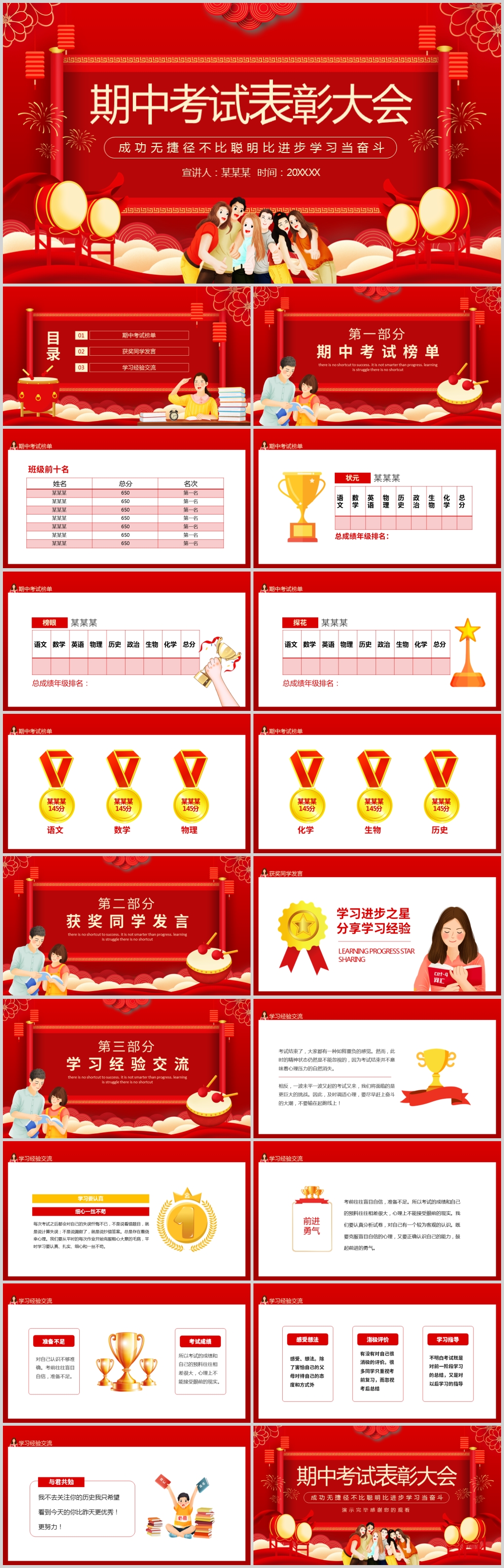 期中考试表彰大会成功无捷径不比聪明比进步学习当奋斗动态PPT