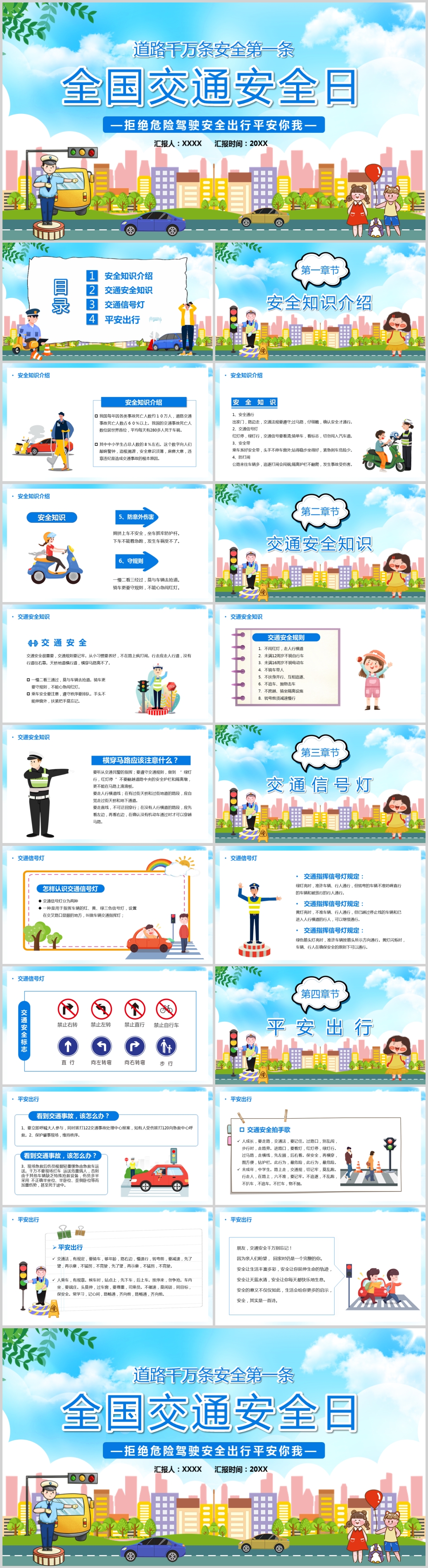 卡通全国交通安全日PPT模板