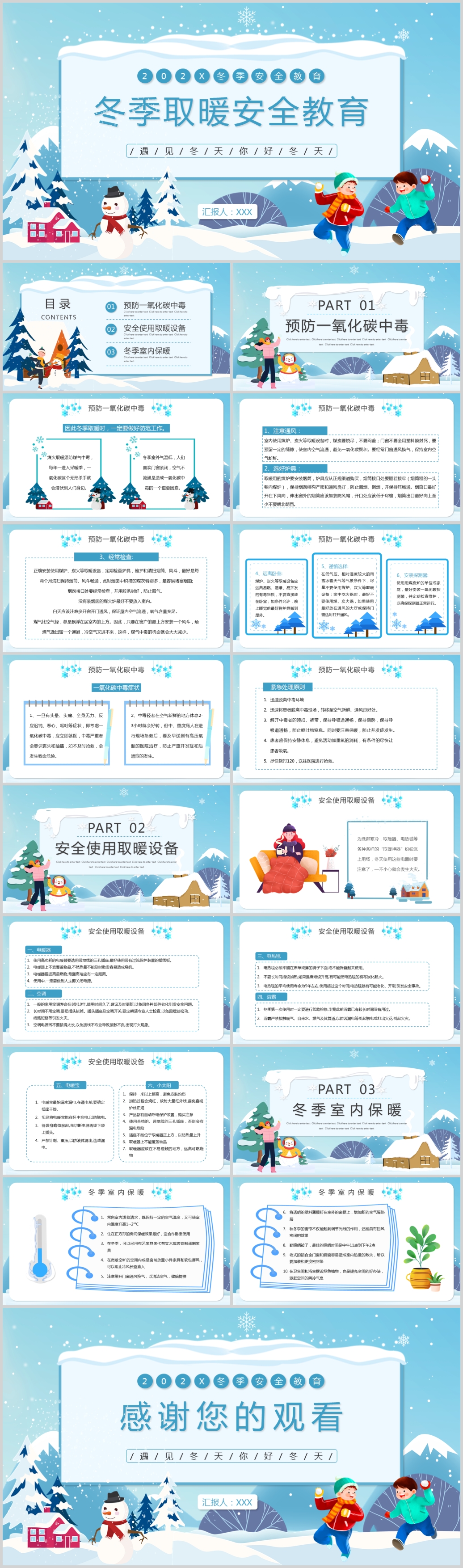 卡通冬季取暖安全教育PPT模板