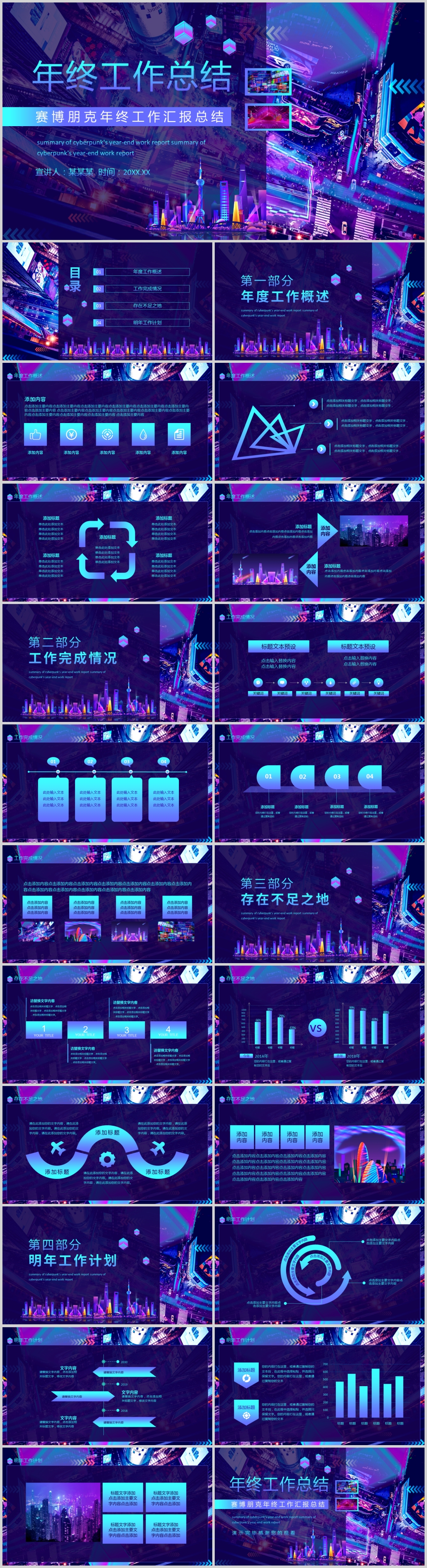 赛博朋克年终工作汇报总结PPT模版