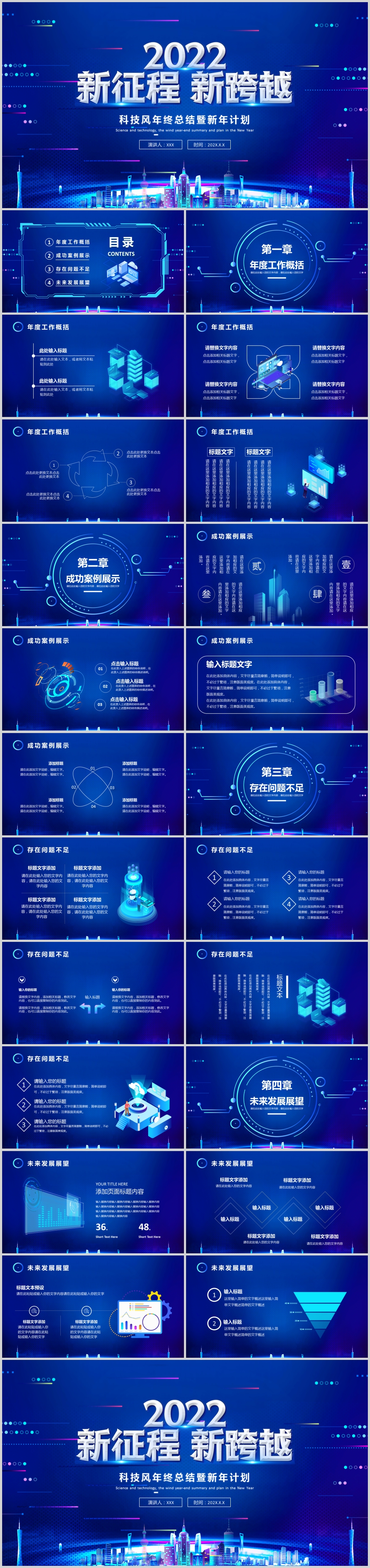 蓝色2022科技风年终总结工作计划通用PPT模板