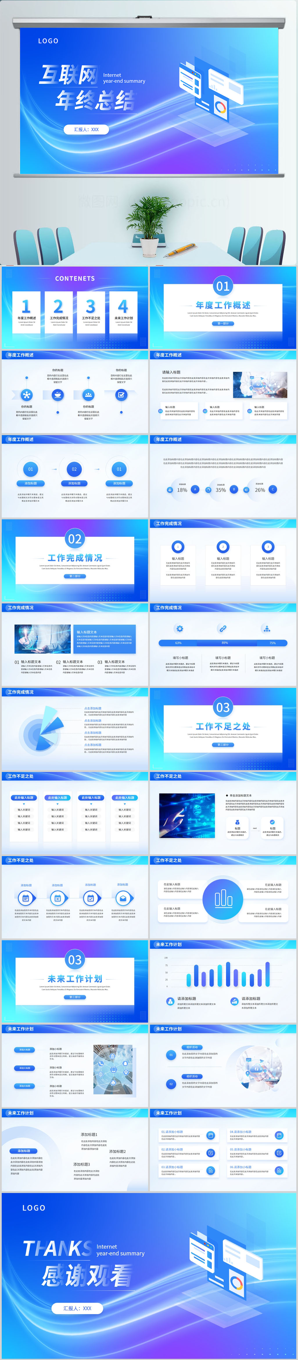 蓝色简约科技风年中工作总结工作汇报ppt模板设计